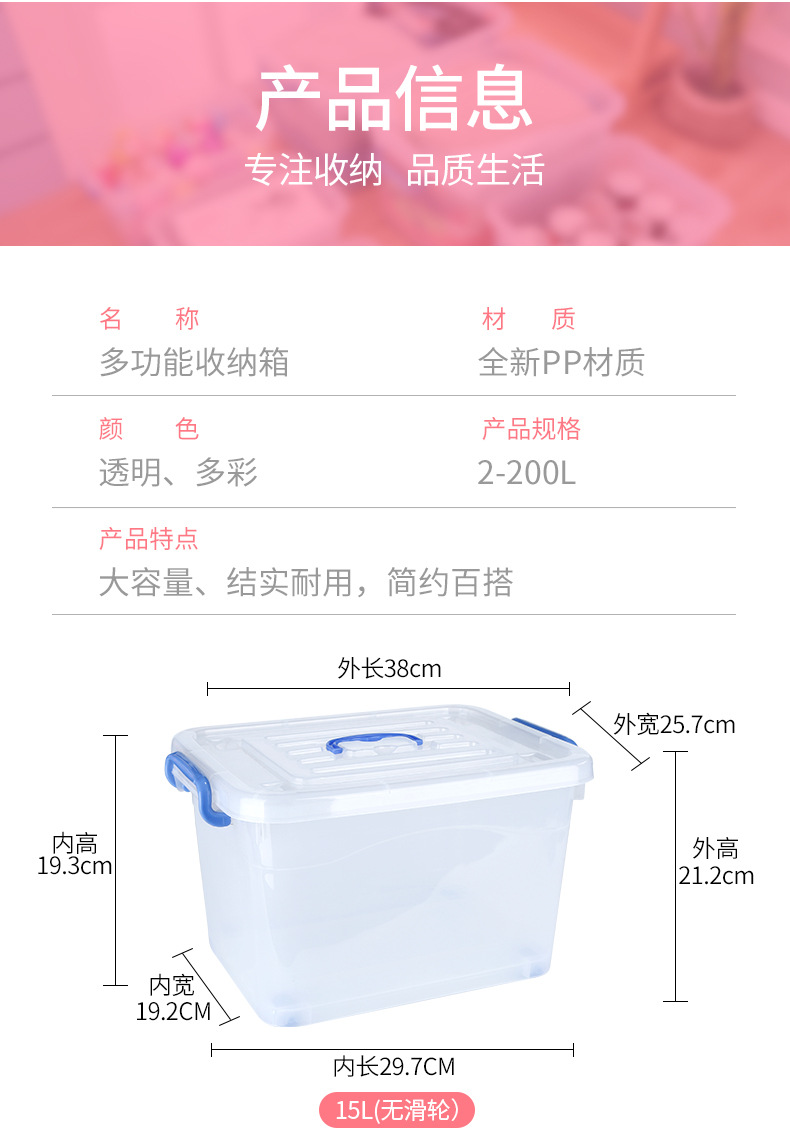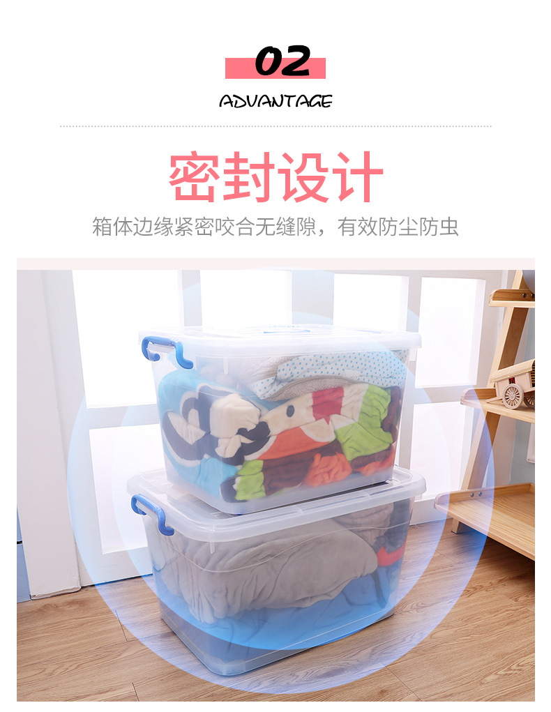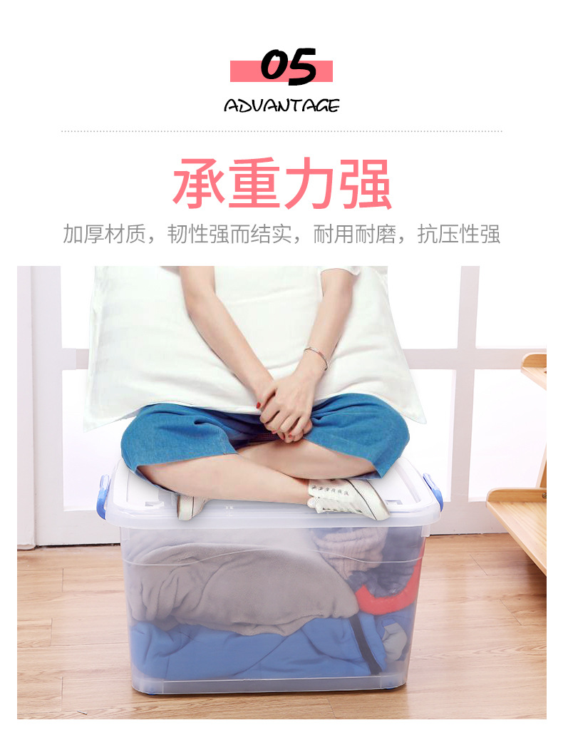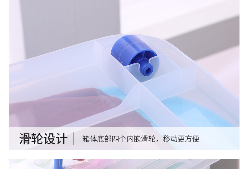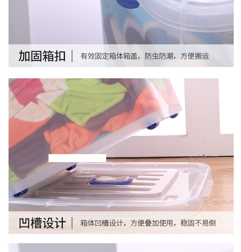 두꺼운 투명 플라스틱 수납함 대형 뚜껑있는 수납박스 휴대용 바퀴 달린 의류 정리 수납함