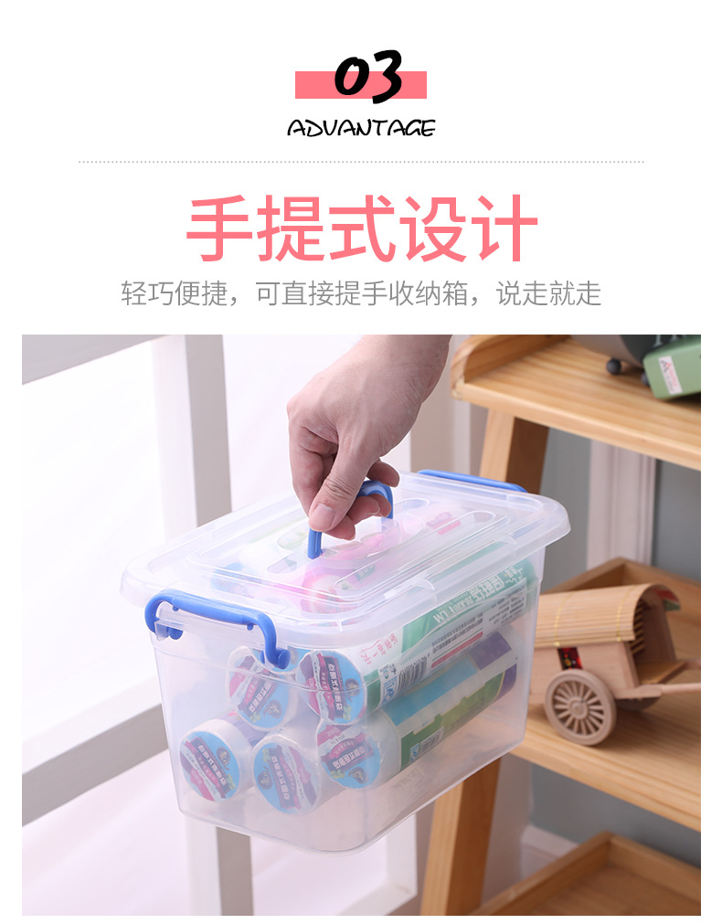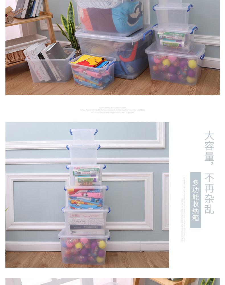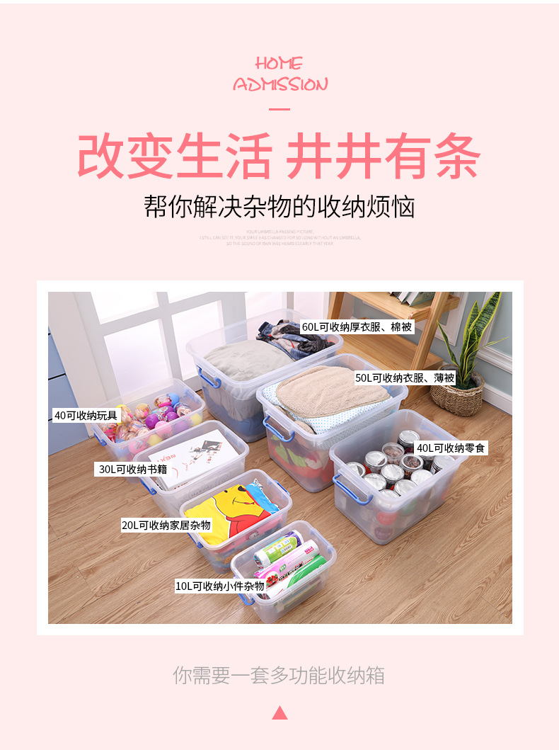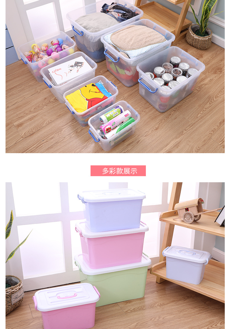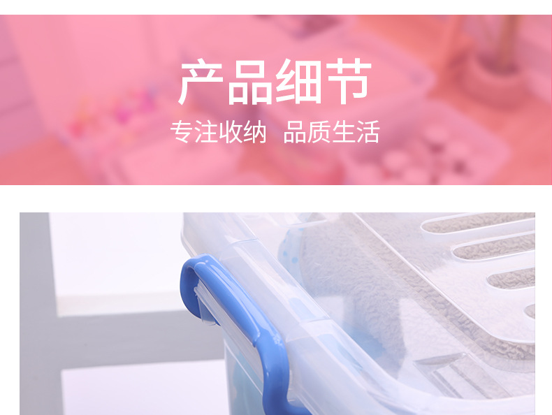 두꺼운 투명 플라스틱 수납함 대형 뚜껑있는 수납박스 휴대용 바퀴 달린 의류 정리 수납함