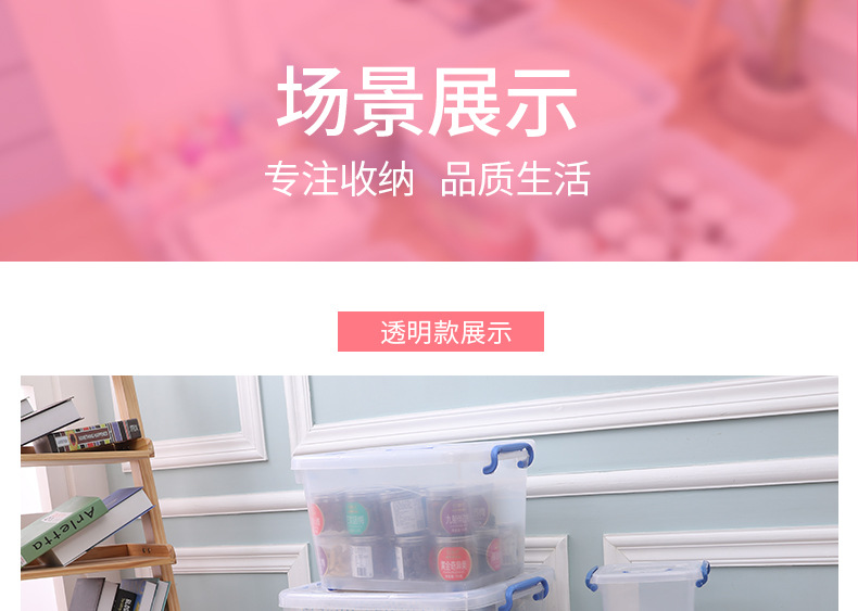 두꺼운 투명 플라스틱 수납함 대형 뚜껑있는 수납박스 휴대용 바퀴 달린 의류 정리 수납함스토어 가기