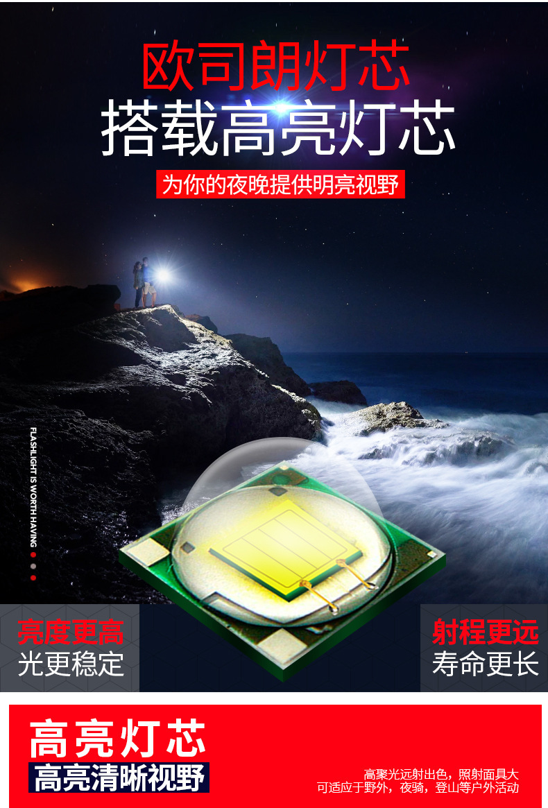 【工作档位】:强-中-弱-闪烁-SOS