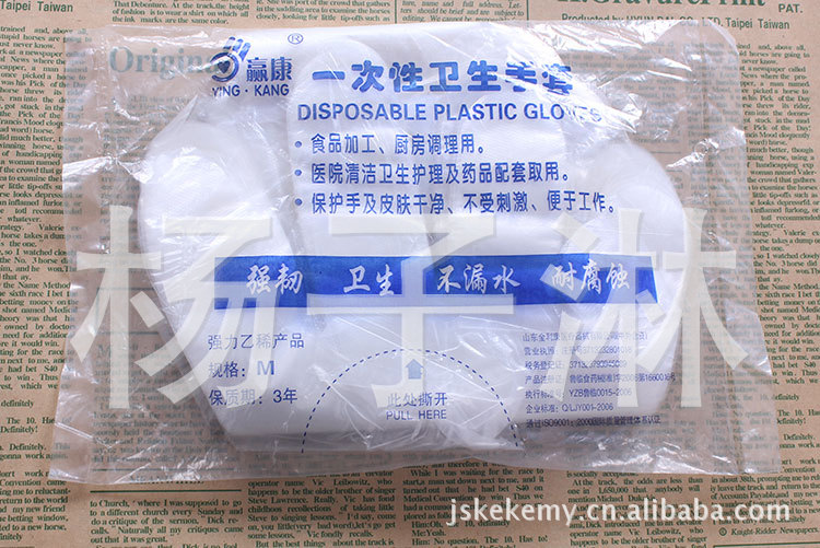 特性:一次性薄膜手套,LDPE低密度聚乙烯料生产,1万只装1箱