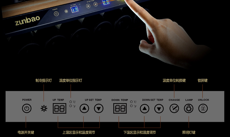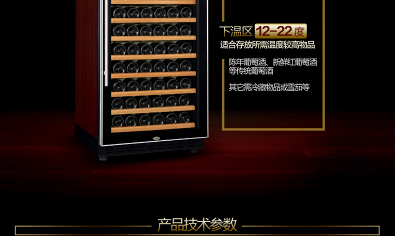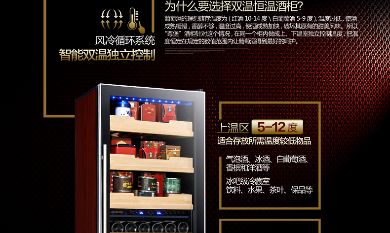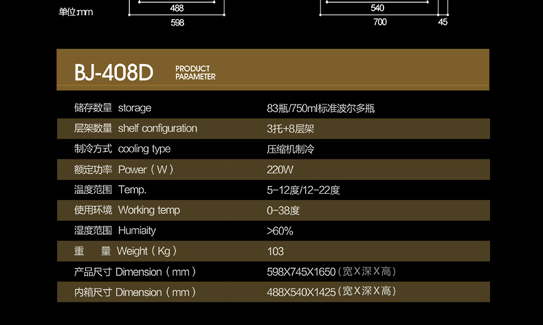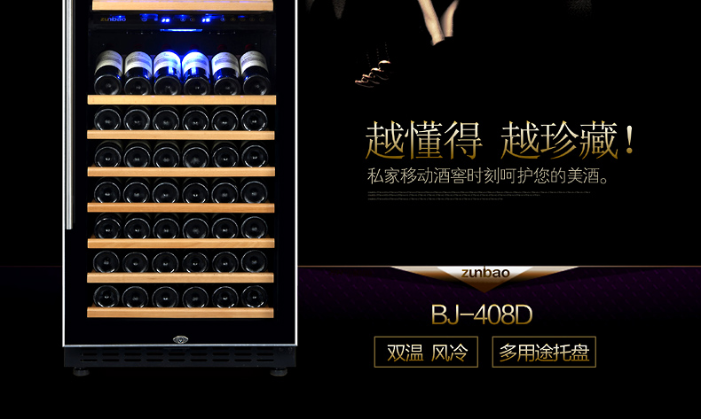 尊堡BJ-408D压缩机制冷红酒柜144瓶408L双温风冷