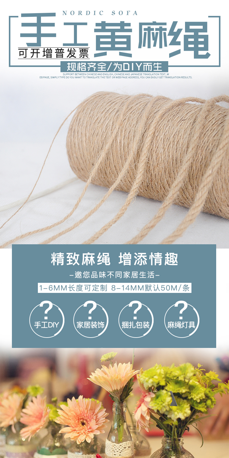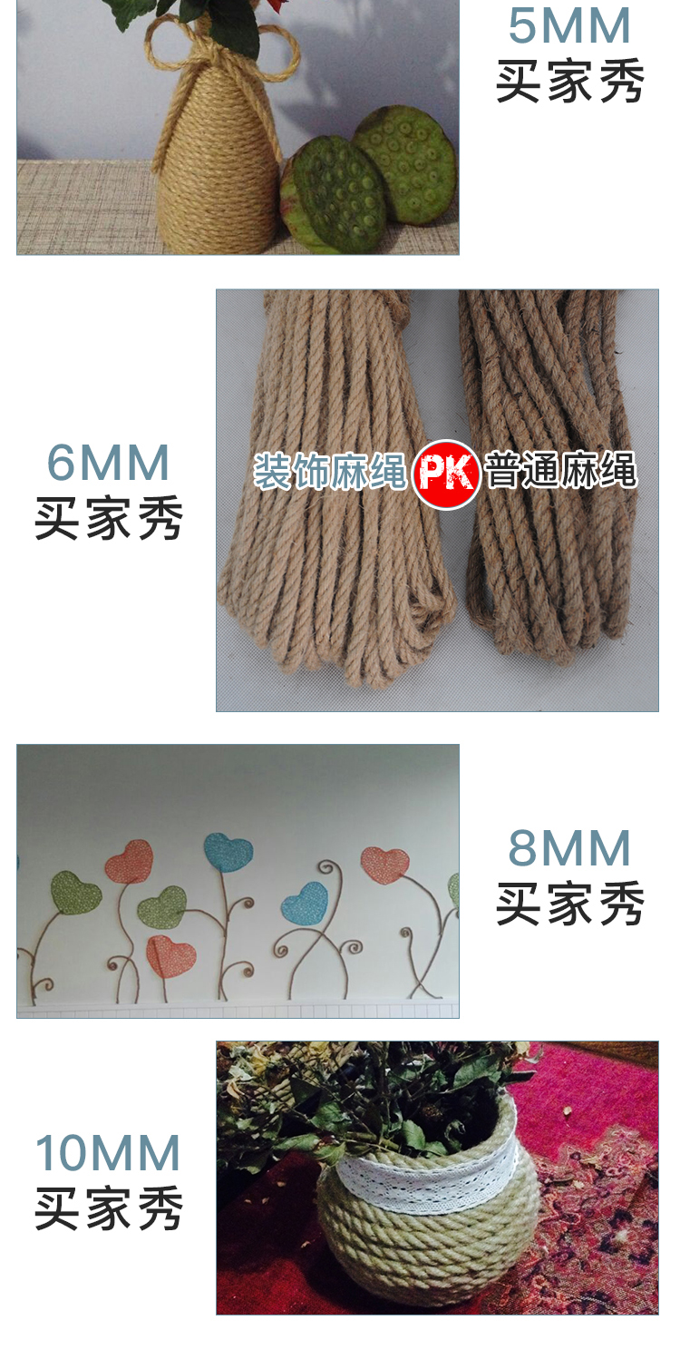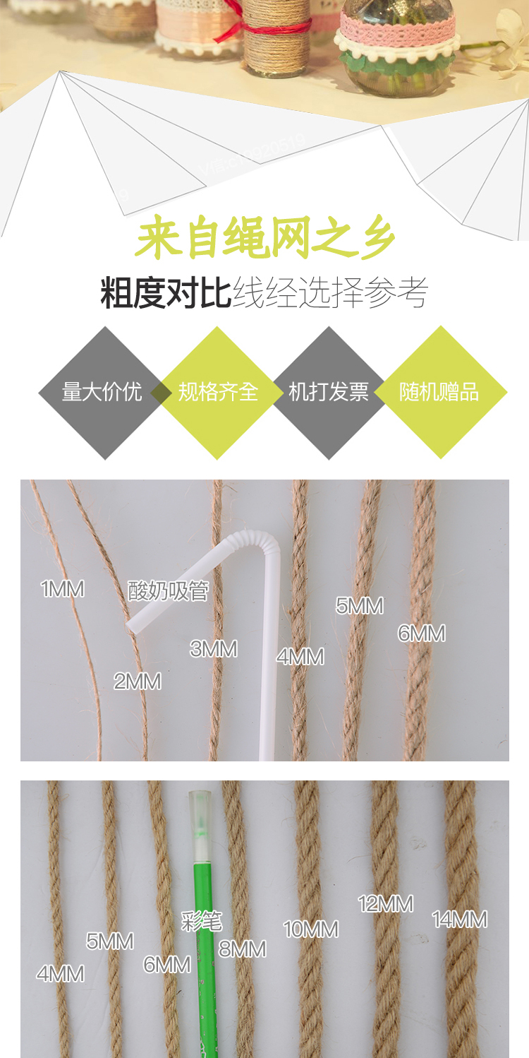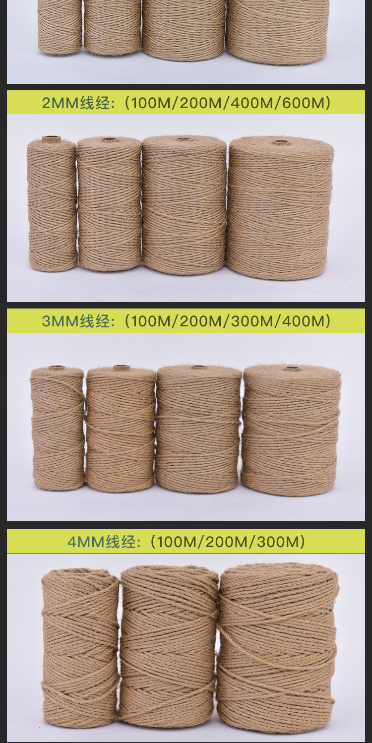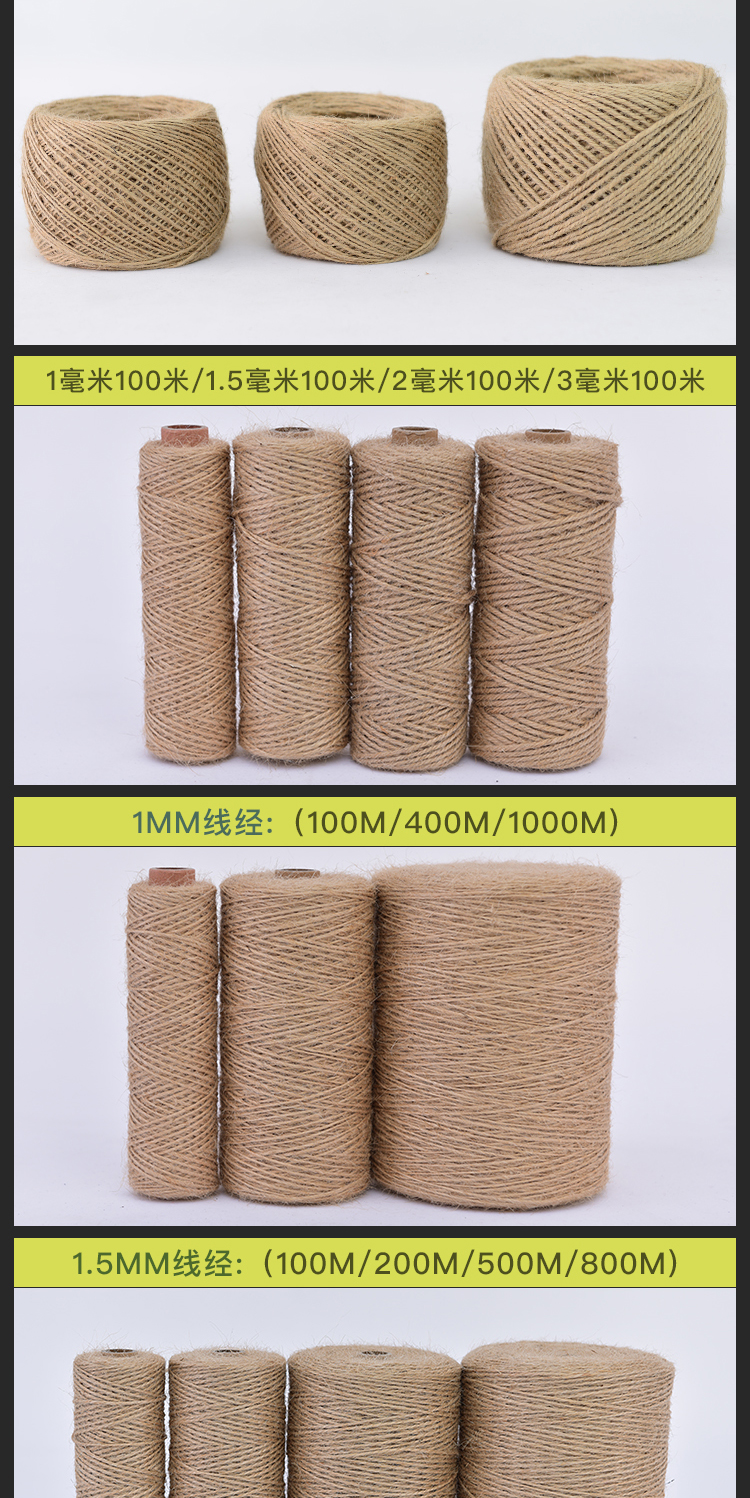 1-14mm 두께의 장식용 대마 로프 도매 DIY 수제 액세서리 대마 로프 태그 포장 로프 제조 업체 공급스토어 가기