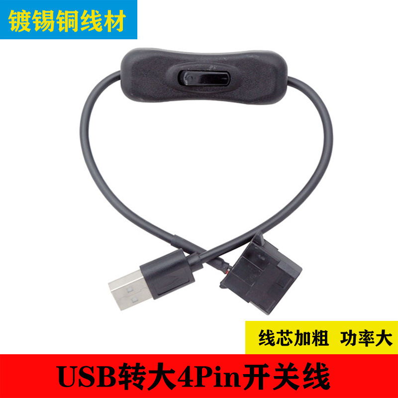 电脑机箱风扇USB转大4Pin供电开关线12V转5V风扇转接线 USB风扇线   电脑风扇转接线USB转4Pin开关线12V转5V风扇带开关供电线电脑线材   机箱风扇USB转大4Pin套尼龙网12V转5V电脑风扇转接线 USB转换线