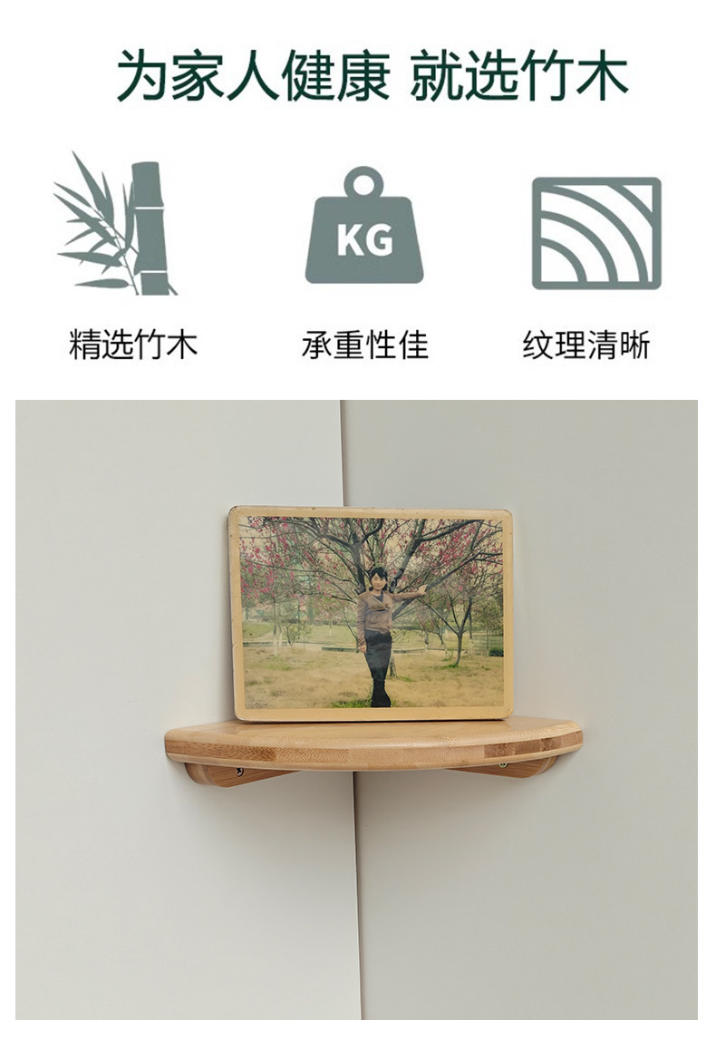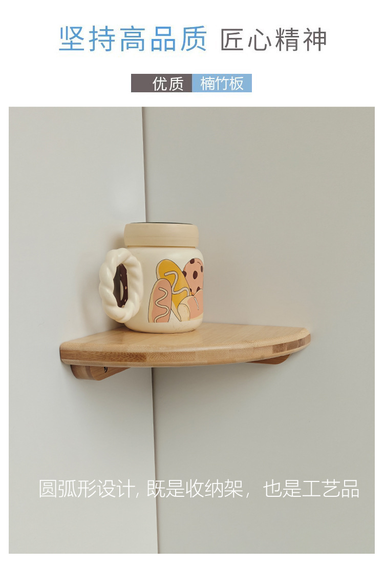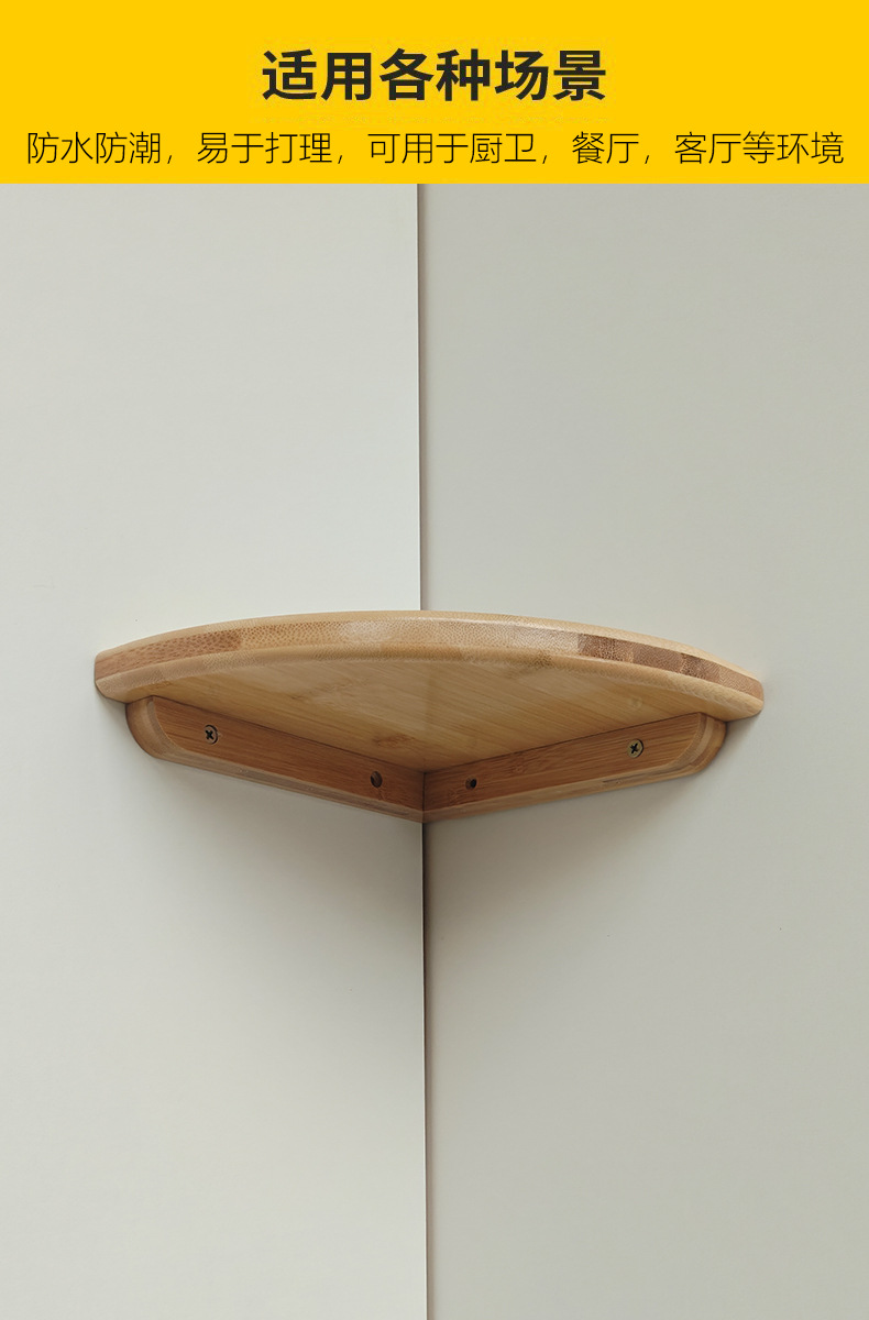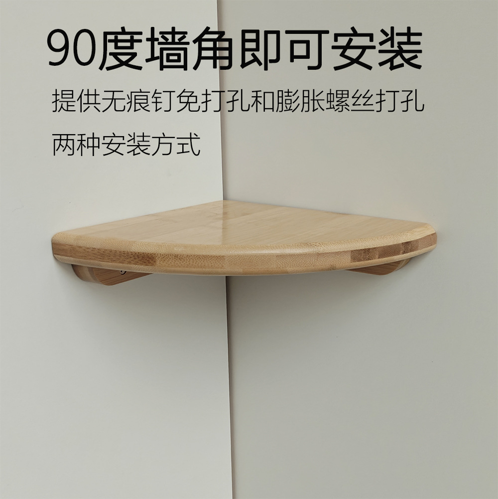 대나무 부채 모양의 파티션 코너 수납 랙 벽걸이 삼각형 주방 및 욕실 장식용 펀치없는 보관 선반스토어 가기