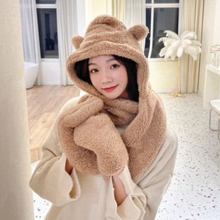 韩国新款秋冬小熊帽子可爱女毛绒骑车防风保暖护耳口罩围脖一体帽 帽子手套围巾一体三件套熊耳朵帽子秋冬保暖帽户外加厚女帽子冬 2021新款耳罩冬季保暖女卡通猫耳朵护耳神器 网红发箍式耳套批发 卡通乐园毛绒达菲熊洗脸头箍雪莉玫米妮大蝴蝶结宽发箍网红发饰品