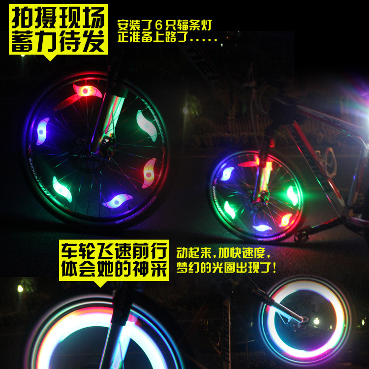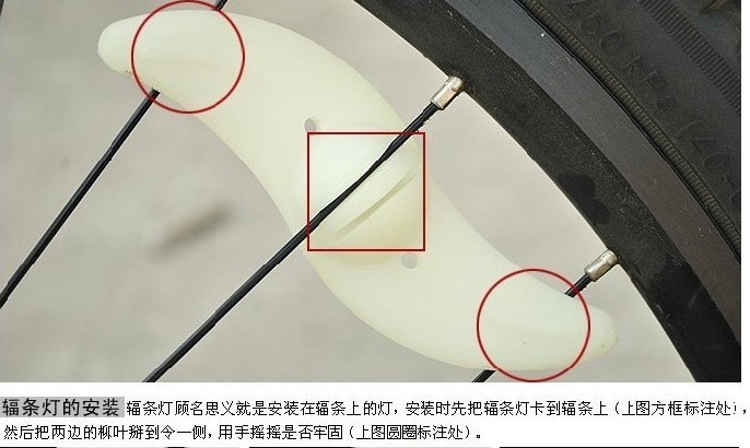 【安装】无需改动线路,直接按照在车轮的钢丝上便可;一个车轮可以卡多只,多色组合效果更炫更酷!