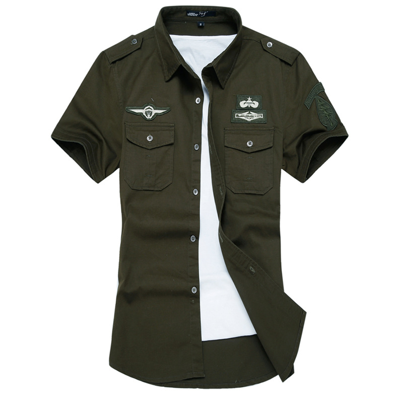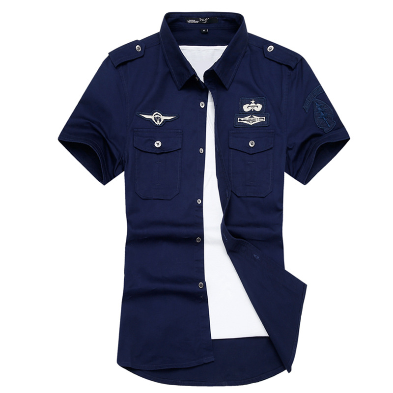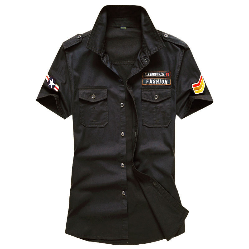 아마존 여름 새로운 반팔 셔츠 남성용 유럽과 미국의 작업복 플러스 사이즈 슬림핏 반소매 셔츠 군복 남성용 패션