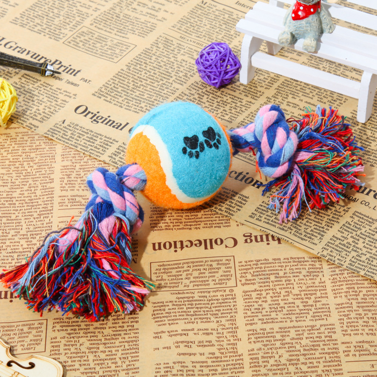 테니스 공이 달린 이중 매듭 테디베어 애완동물 치아 청소용 강아지 장난감 면 로프 애완동물 장난감 테니스 공스토어 가기