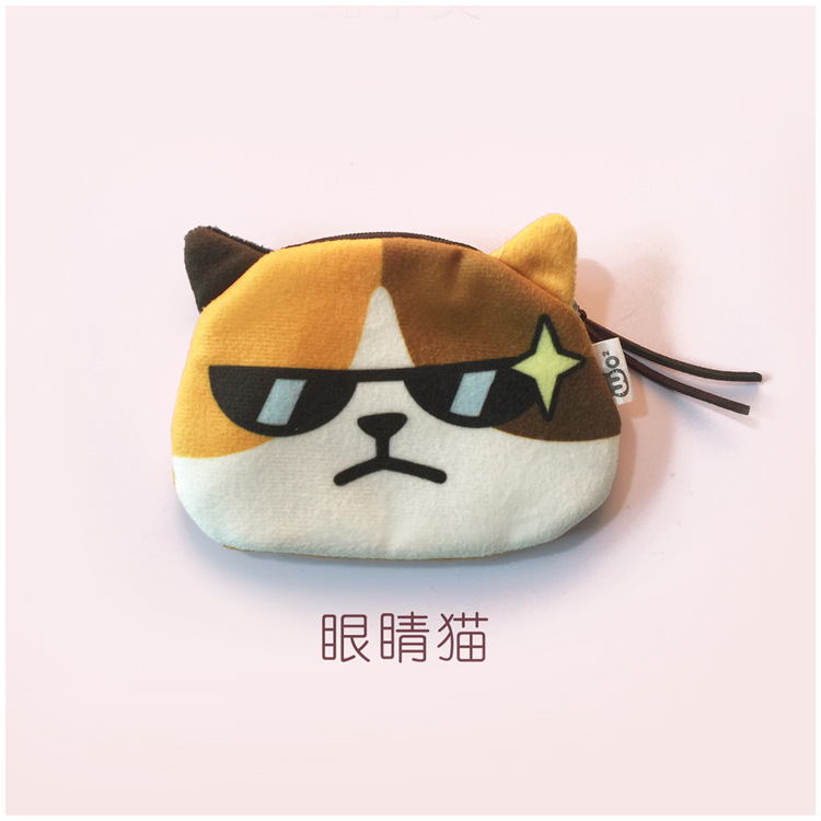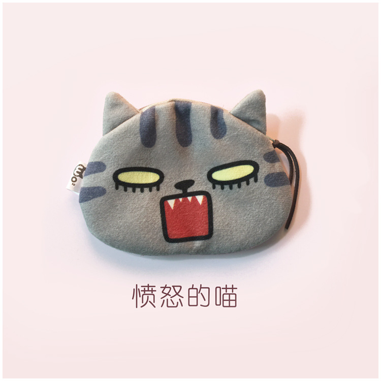 귀여운 고양이 얼굴 가방 표현 창조적 인 만화 동전 지갑 인쇄 봉제 귀여운 얼굴 동전 지갑 도매 세대의 머리카락스토어 가기