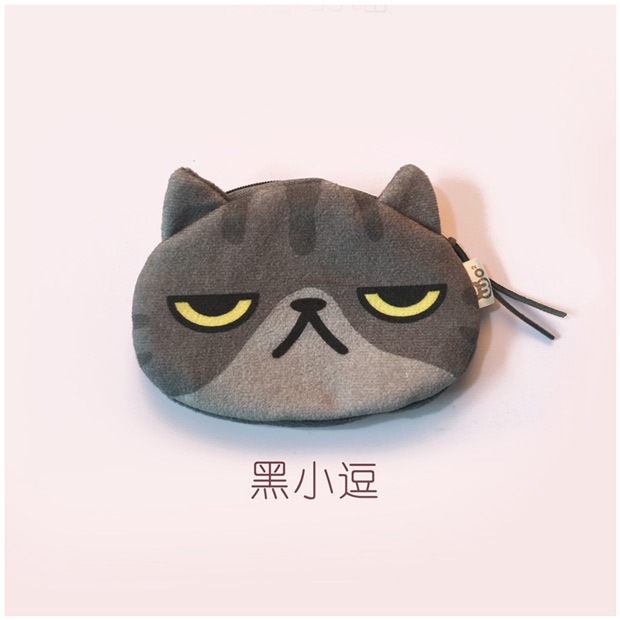 귀여운 고양이 얼굴 가방 표현 창조적 인 만화 동전 지갑 인쇄 봉제 귀여운 얼굴 동전 지갑 도매 세대의 머리카락