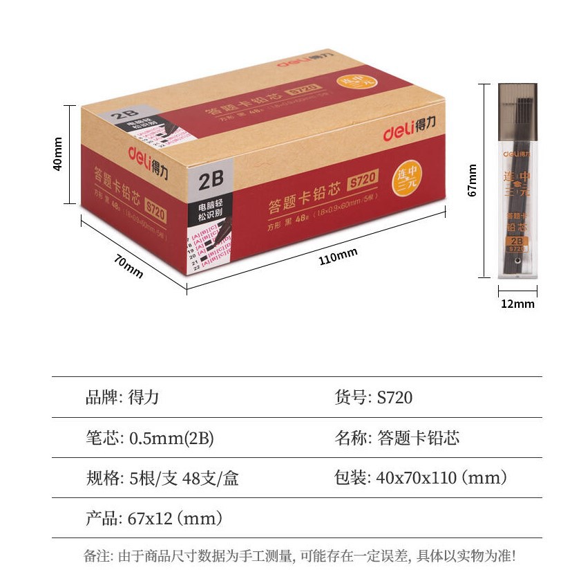 델리 S720/s730 학생 연필 코어 코팅 답변 카드 연필 코어 대체 코어 2B 코팅 링 연필 코어 5 개 \ 상자스토어 가기