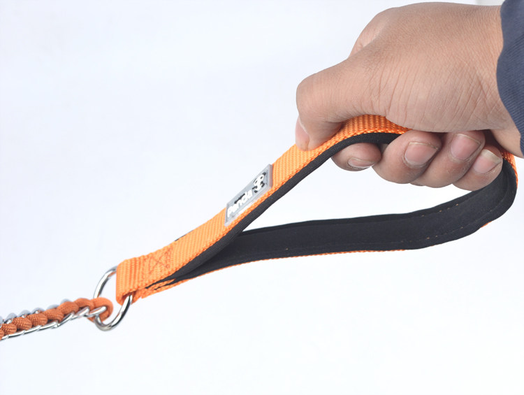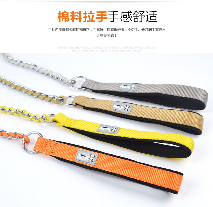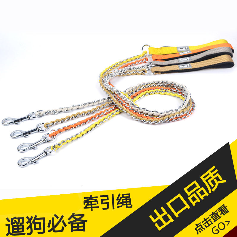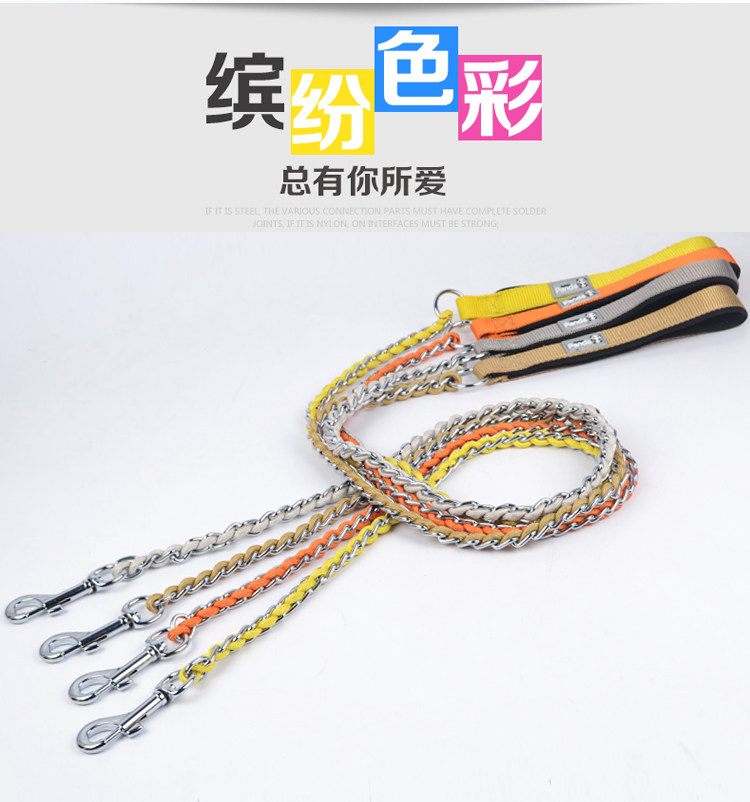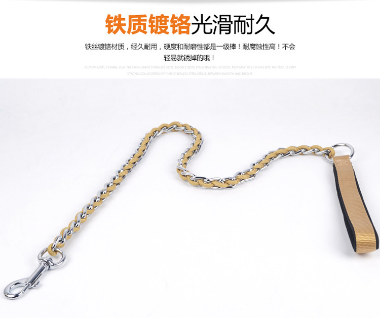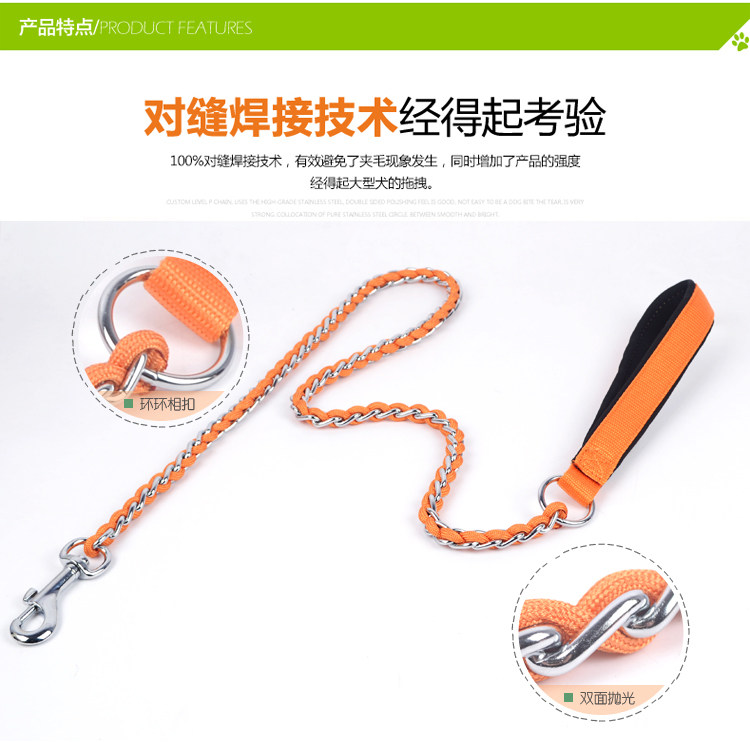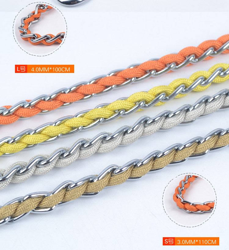 您家的宝贝是否有经常咬链子的习惯呢?还在担心狗狗把牵引绳咬坏、扯坏吗?有了这款穿尼龙绳镀镍铁链牵绳,您再也不怕啦!