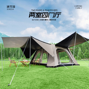 跨境野营用品便携帐篷户外3-4人露营天幕两室一厅透气大帐篷全套