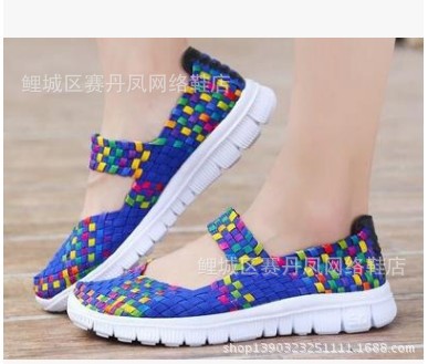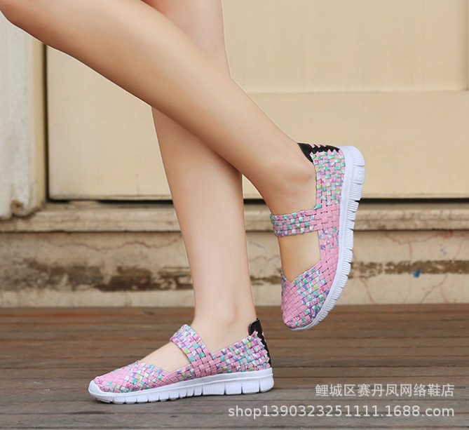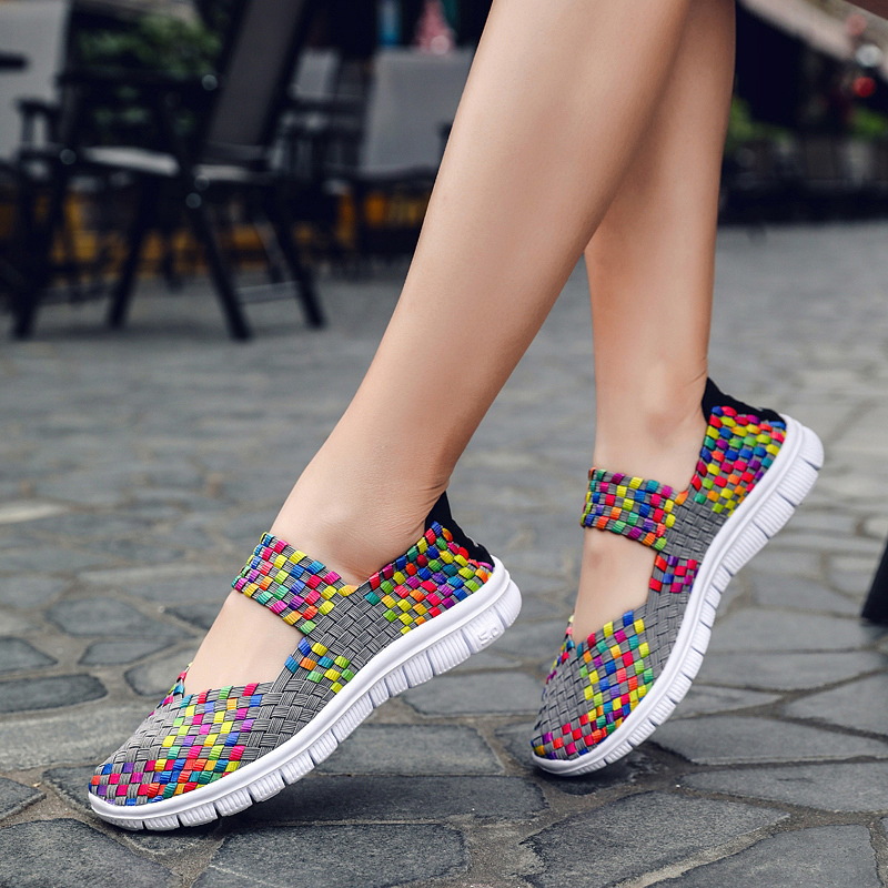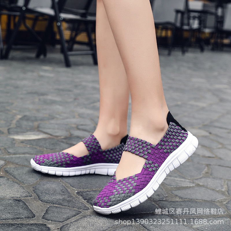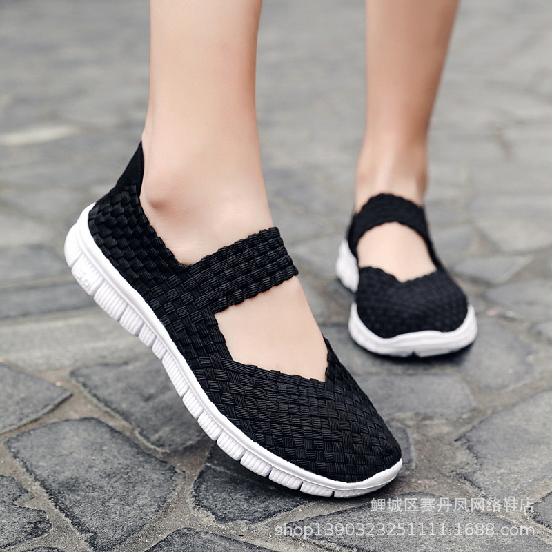 플러스 사이즈 여성 신발 여름 손으로 짠 신발 플랫 경량 여성 신발 한국 스타일 통기성 샌들 스포츠 캐주얼 신발 유행스토어 가기