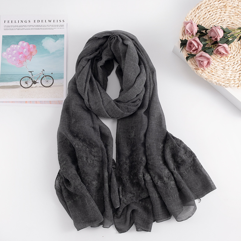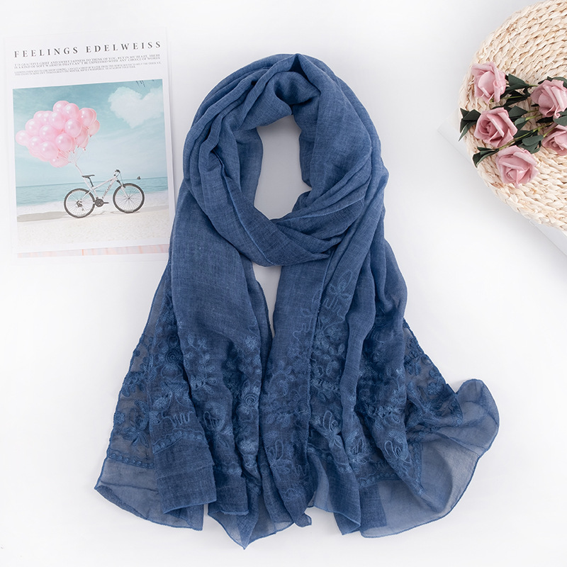 봄 가을 겨울 새로운 한국 스타일 넥타이 염색 자수 스카프 여자의 모든 일치 자수 스카프 멀티 컬러 한국 긴 이중 사용 숄