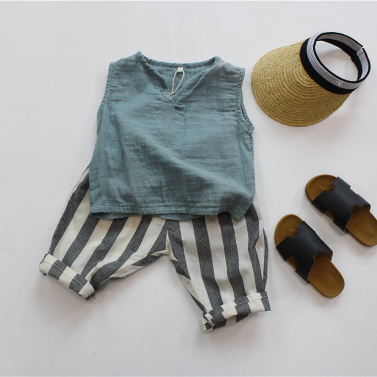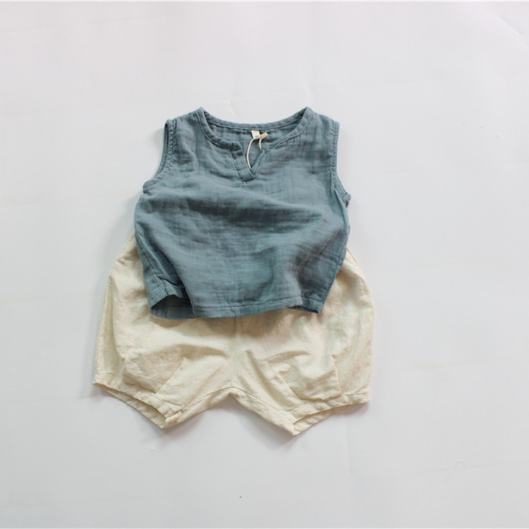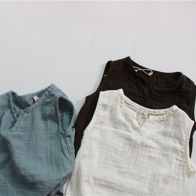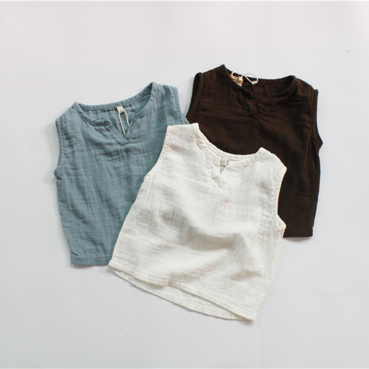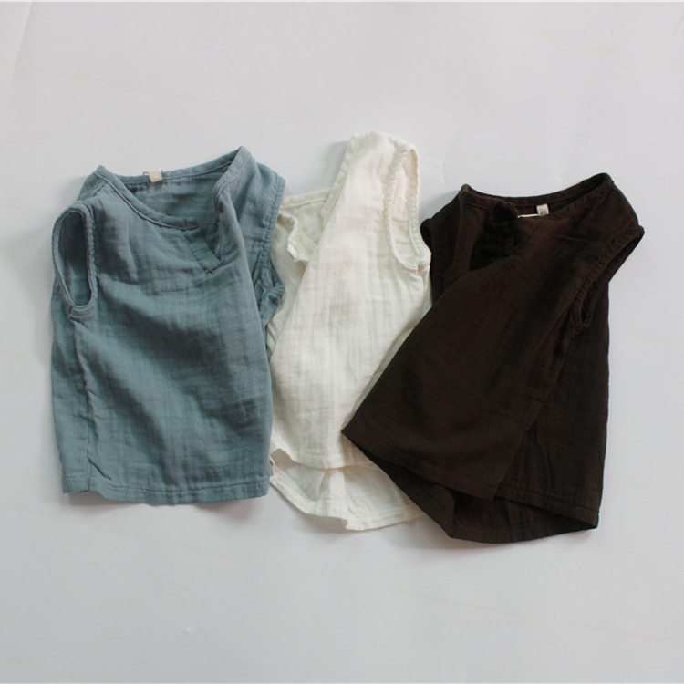 숲의 지도 아동복 여름 아동 조끼 단색 한국 스타일 남아 라운드넥 면사 통기성 여아 캐주얼 만능 아이템스토어 가기