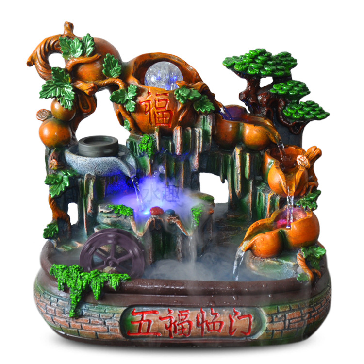 장식품 흐르는 물 조롱박 공예 Wufu Linmen 수지 공예 분수 실내 물 풍경 흐르는 물 제조 업체스토어 가기