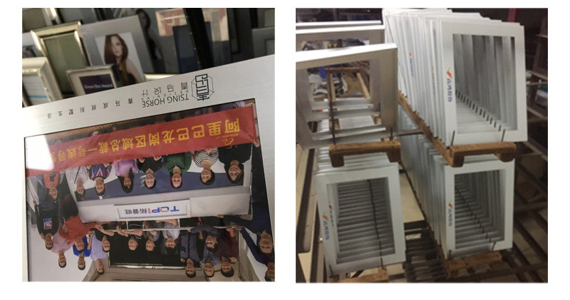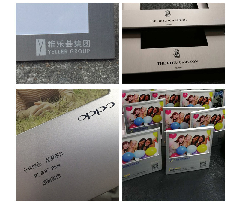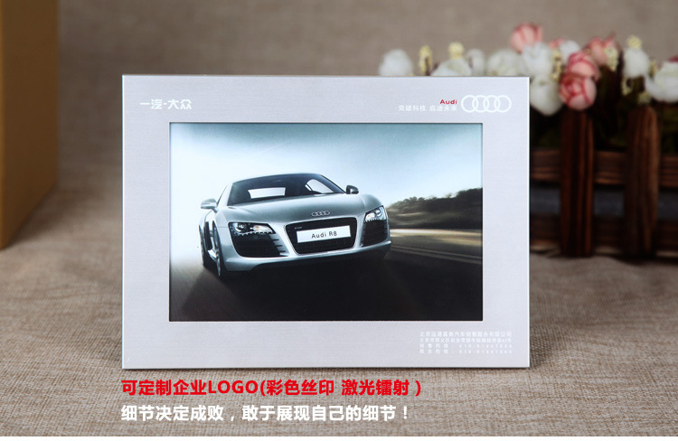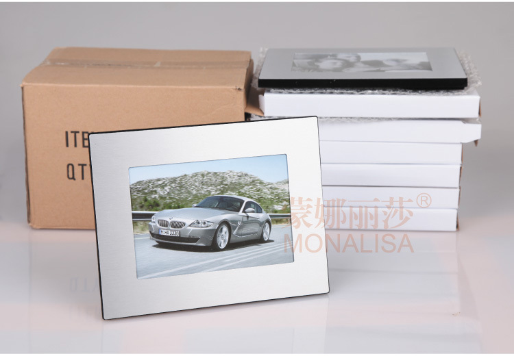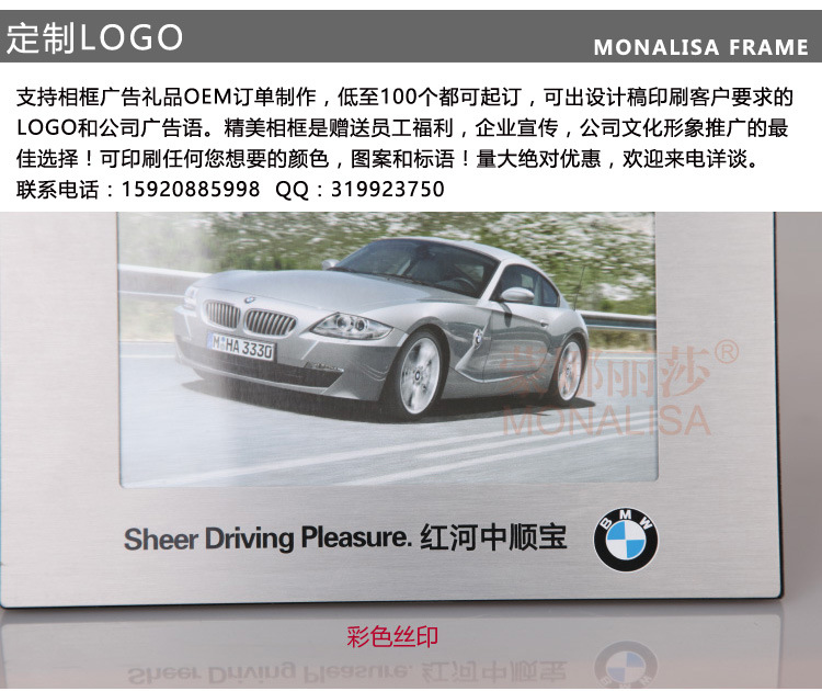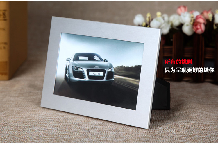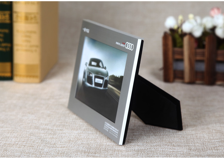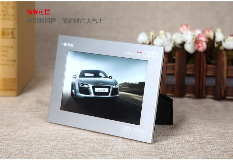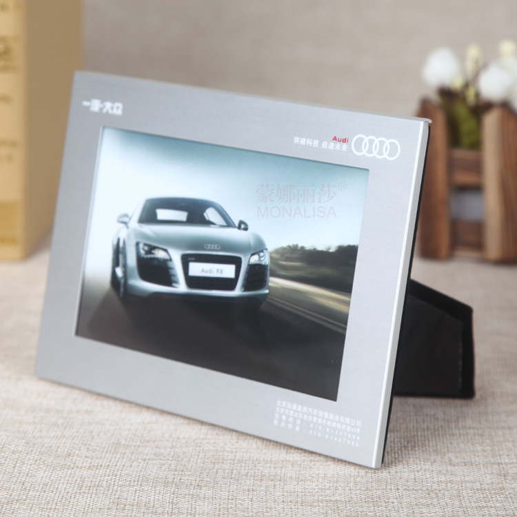 银色金属拉丝logo汽车广告铝合金框 创意摆台高级感六寸摆桌相框