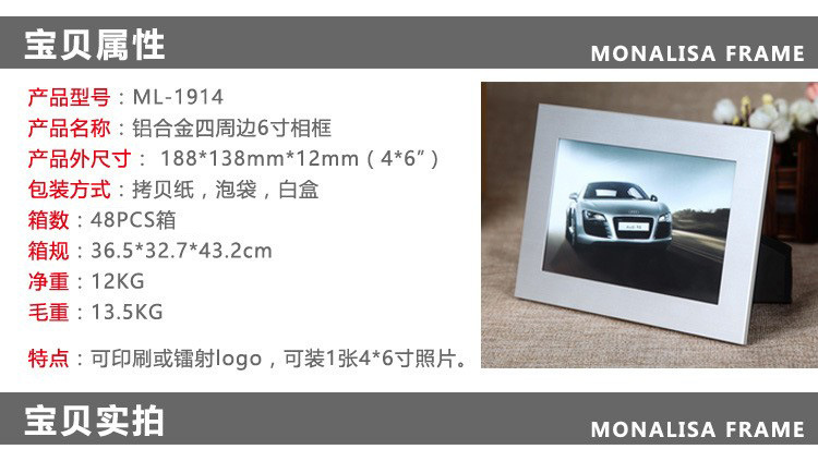 모나리자 알루미늄 합금 사진 프레임 테이블 자동차 배달 사진 장식 프레임 선물 히트 logo6 인치 액자스토어 가기