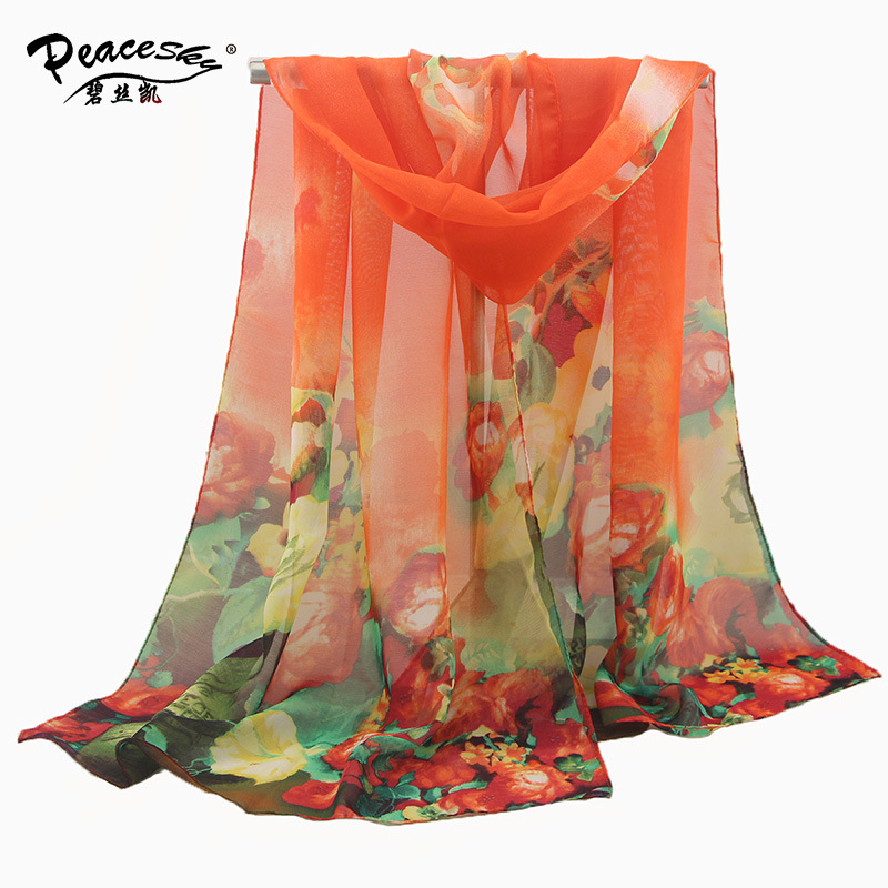 새로운 디지털 인쇄 복고풍 대형 꽃 모란 꽃 조젯 실크 스카프 비치 타월 선 스크린 숄 도매 SW126스토어 가기