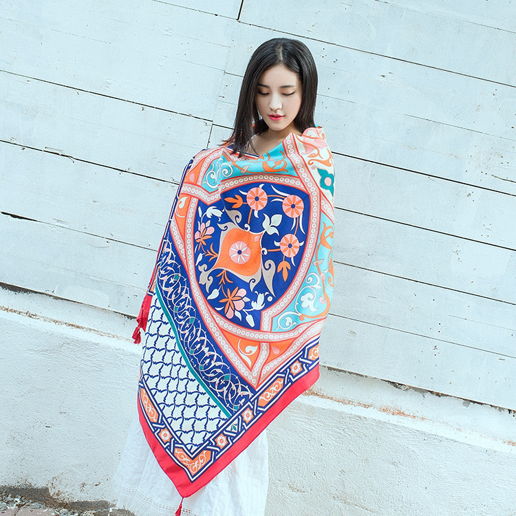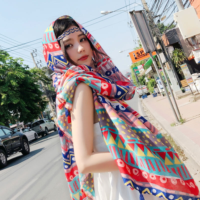 봄 얇은 스카프 술 빈티지 예술적 에스닉 토템 코튼 린넨 자외선 차단제 숄 해변 비치 스카프 여성용