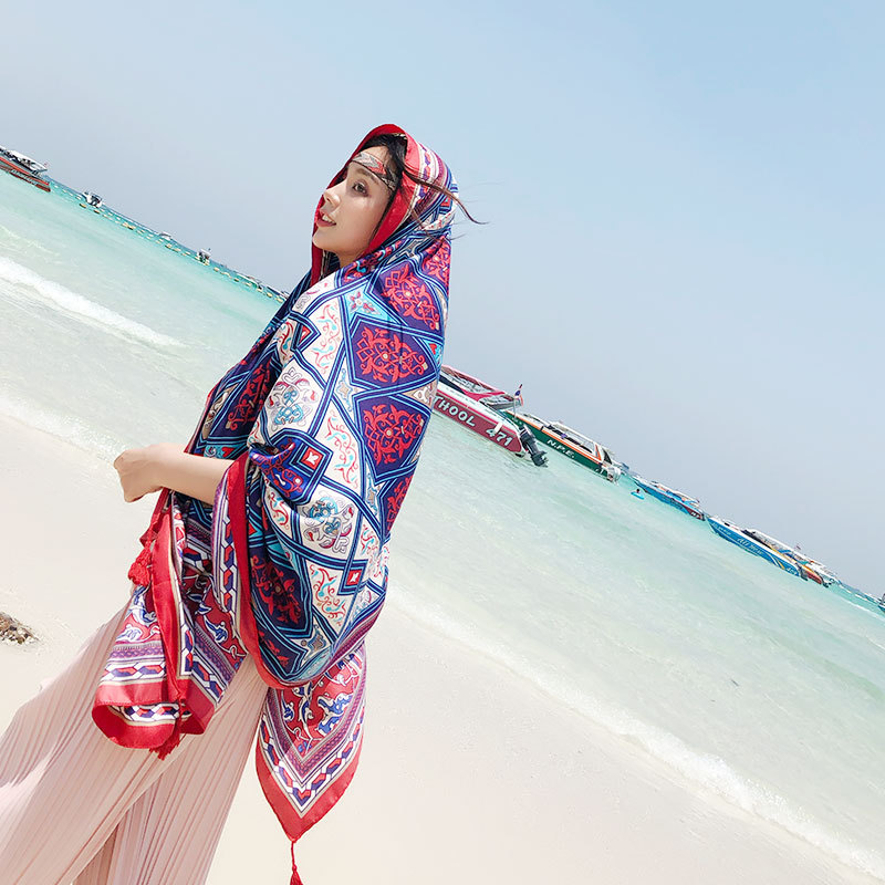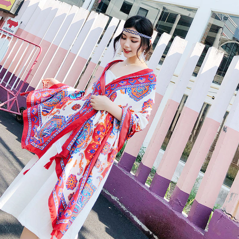봄 얇은 스카프 술 빈티지 예술적 에스닉 토템 코튼 린넨 자외선 차단제 숄 해변 비치 스카프 여성용스토어 가기