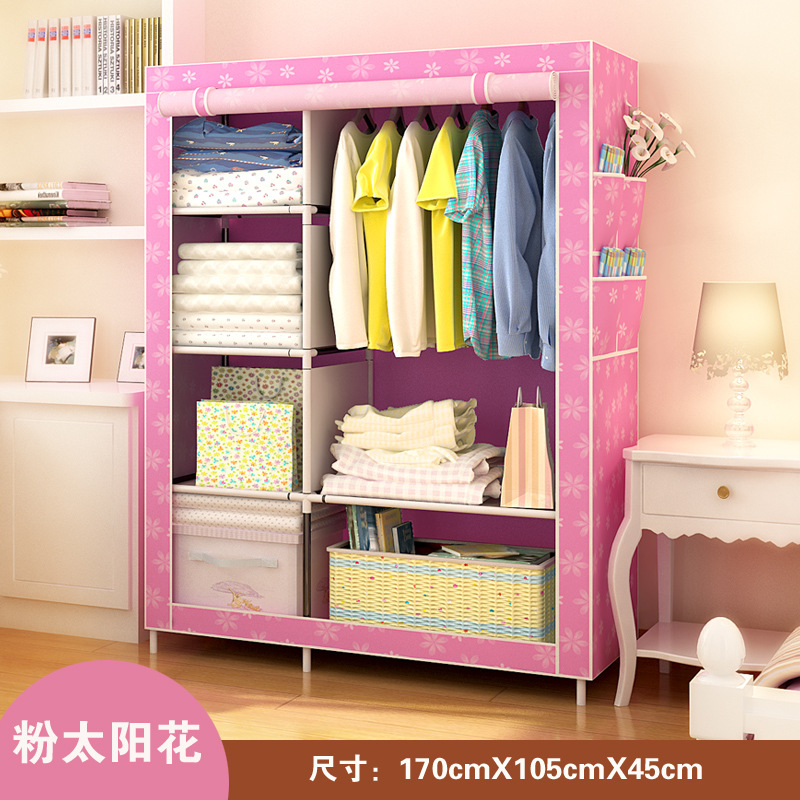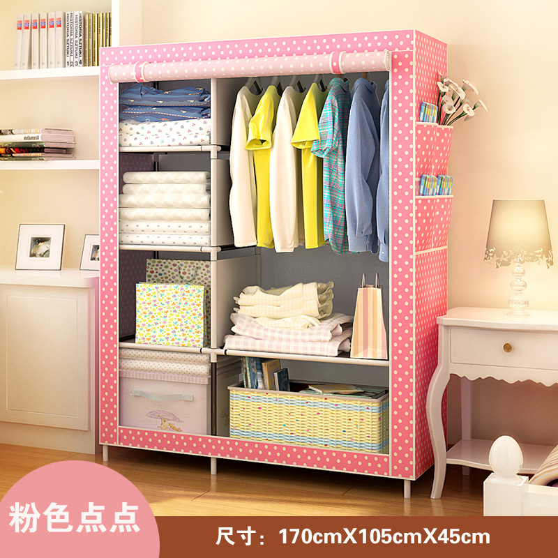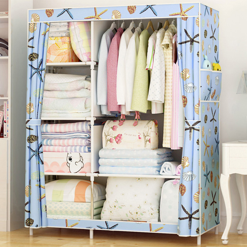 간단한 옷장 강철 프레임 부직포 옷장 강철 파이프 강화 두꺼운 조립 접이식 닫힌 천 옷장 특별 도매스토어 가기
