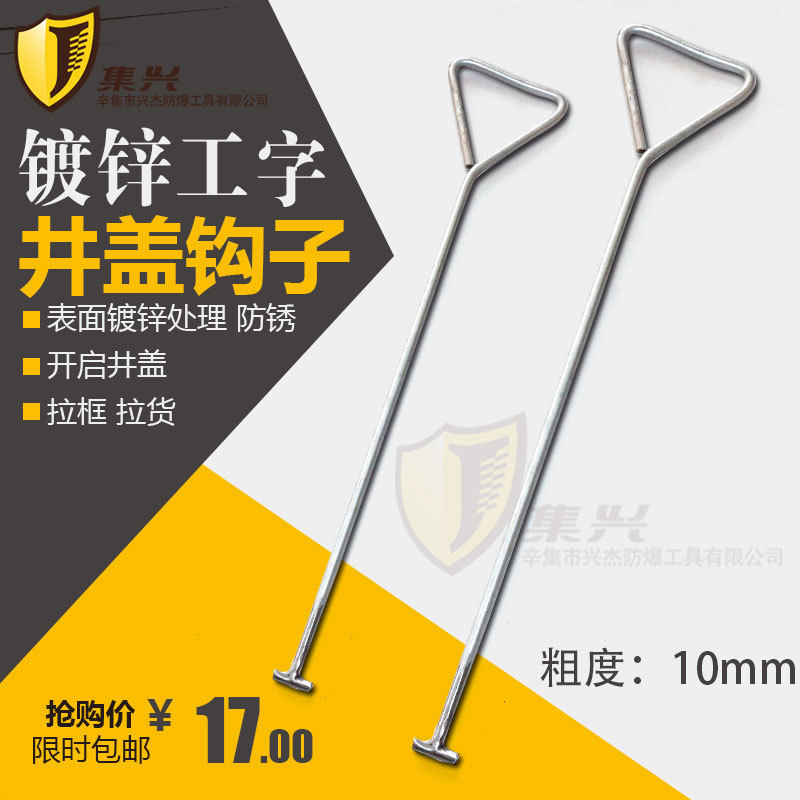 此款井盖钩子分为两种:一款粗度是10mm,表面是镀锌处理,一款粗度是12mm,表面   是发黑处理。亲们根据自己的需要选择好颜色分类,联系客服