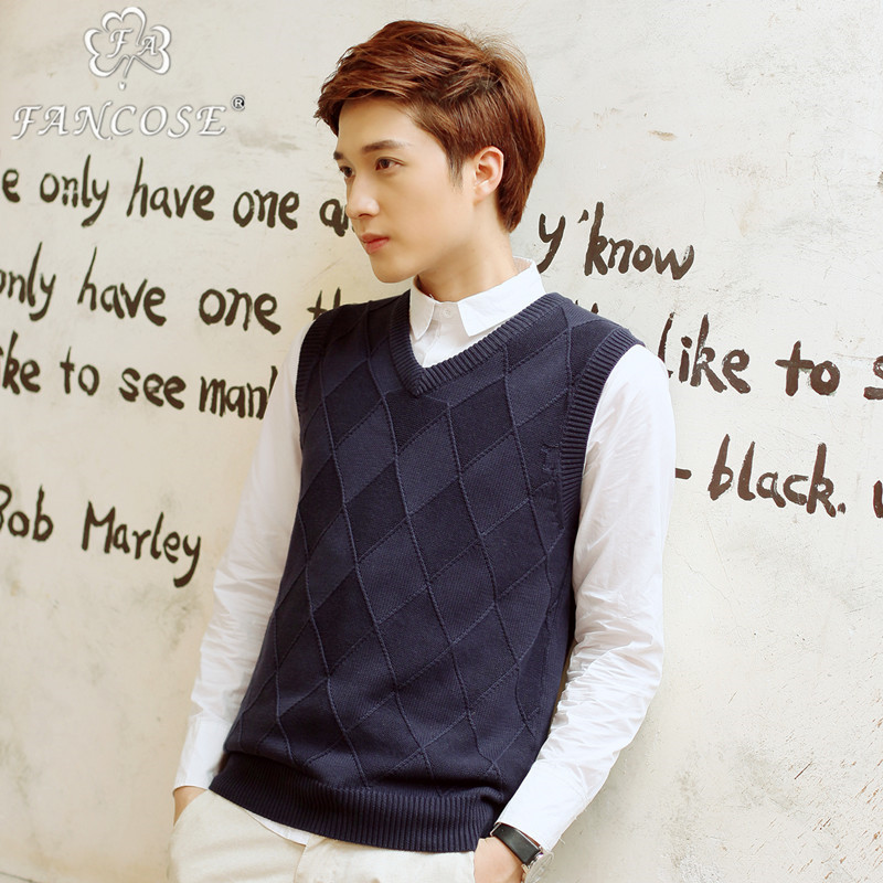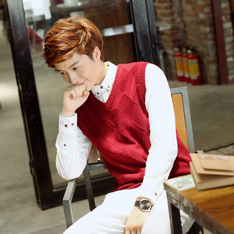 남성용 양모 조끼 풀오버 순면 민소매 스웨터 단색 한국 청소년 V-넥 스웨터 조끼 남성용스토어 가기