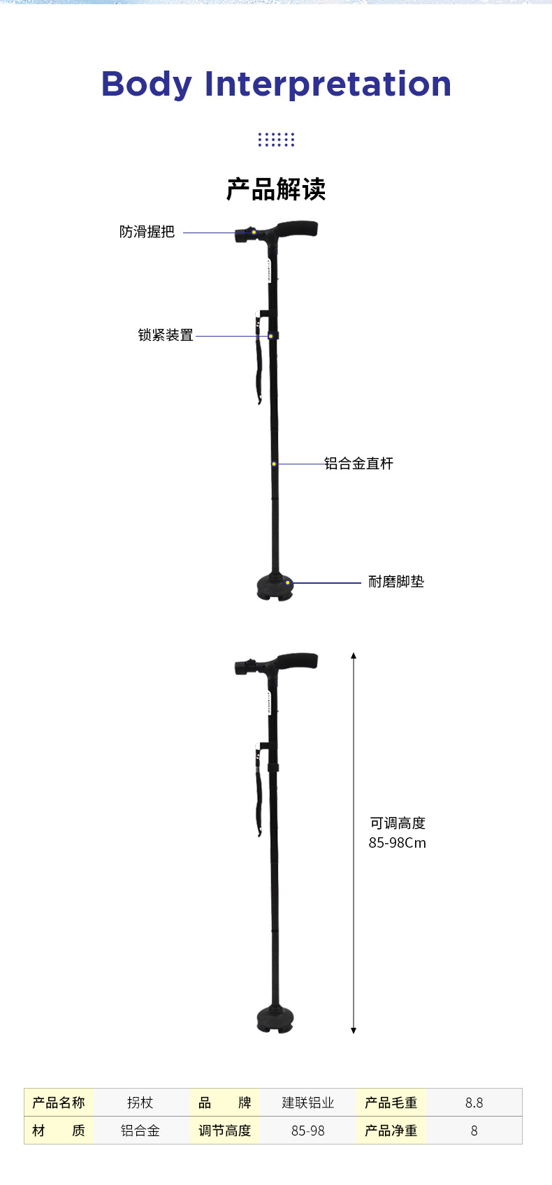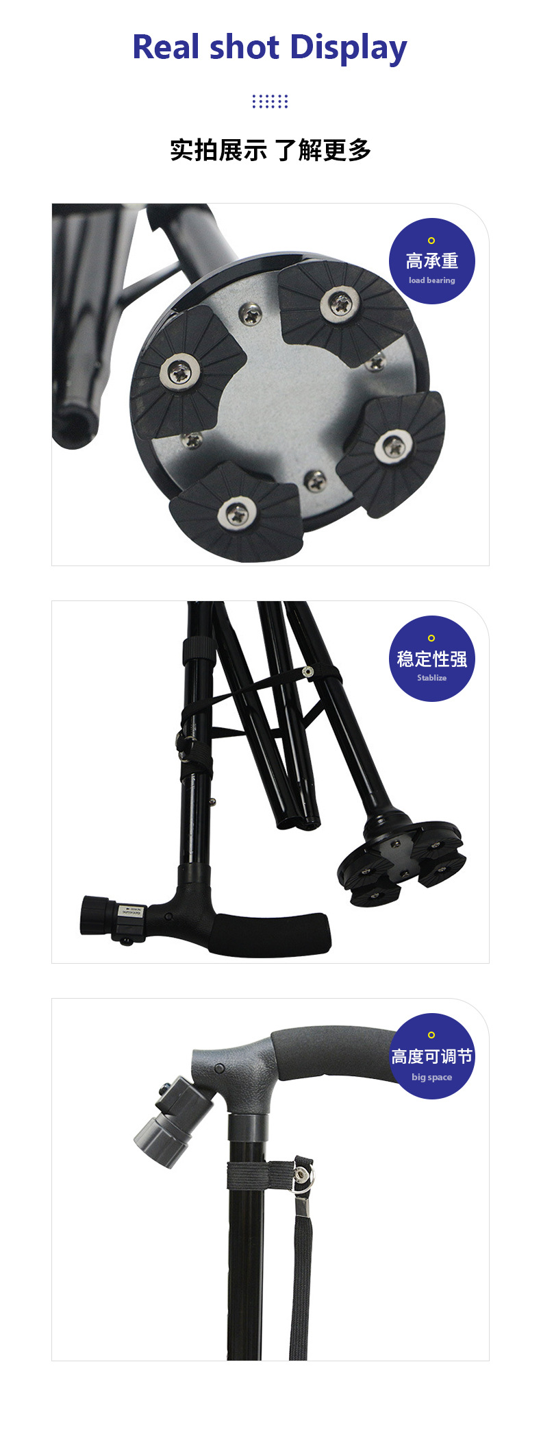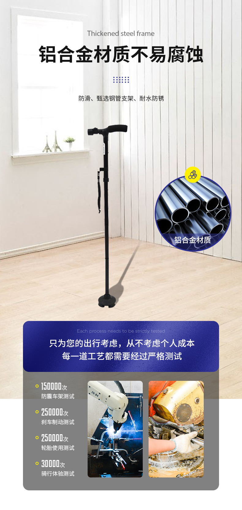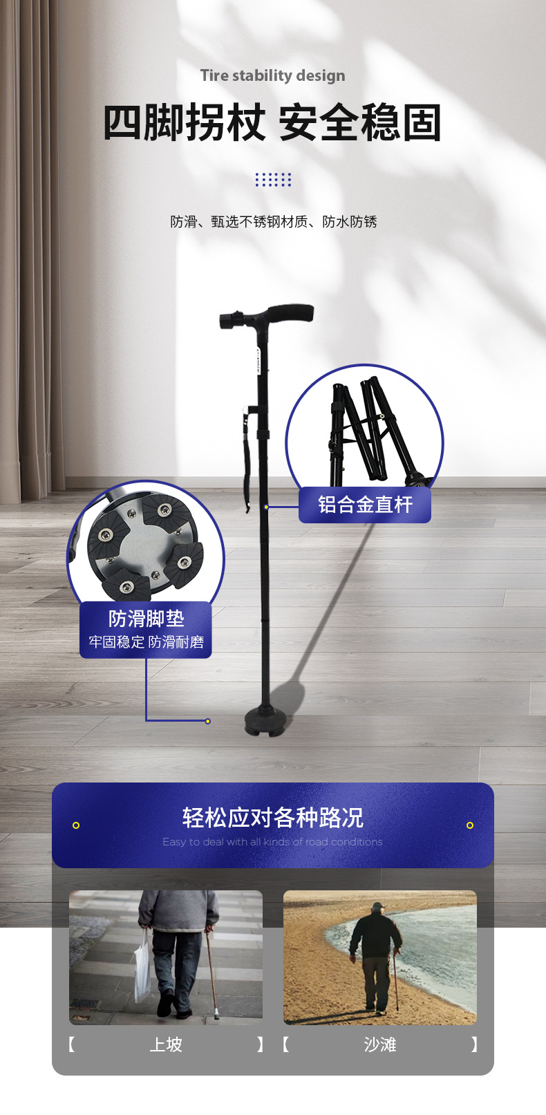 노인 목발 도매 경량 하이킹 스틱 접이식 LED 조명과 개폐식 알루미늄 합금 미끄럼 방지 목발스토어 가기