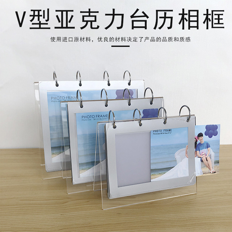 제조업체에서 제공하는 V형 아크릴 탁상 달력 스탠드 V형 사진 프레임 PET 삽입형 사진 앨범 6inch 실버 7inch 사진 앨범 8inch 사진 포켓스토어 가기
