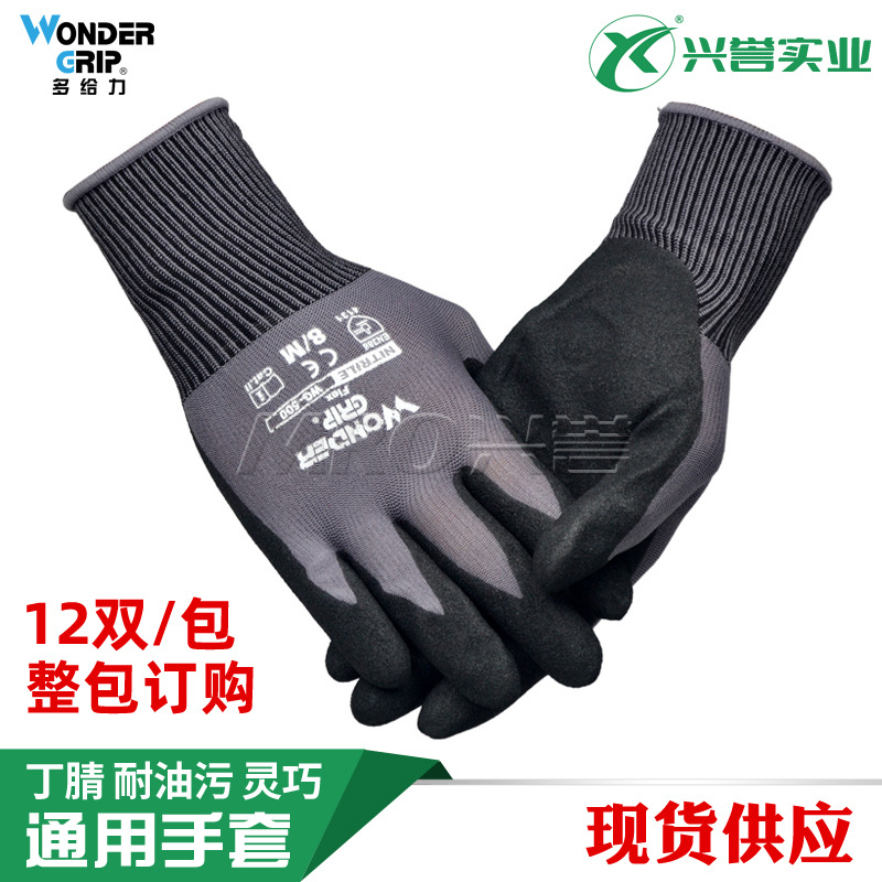 Duogili WG-500 니트릴 담근 폴리 에스테르 나일론 원예 유지 보수 및 취급 내유성 스마트 범용 장갑