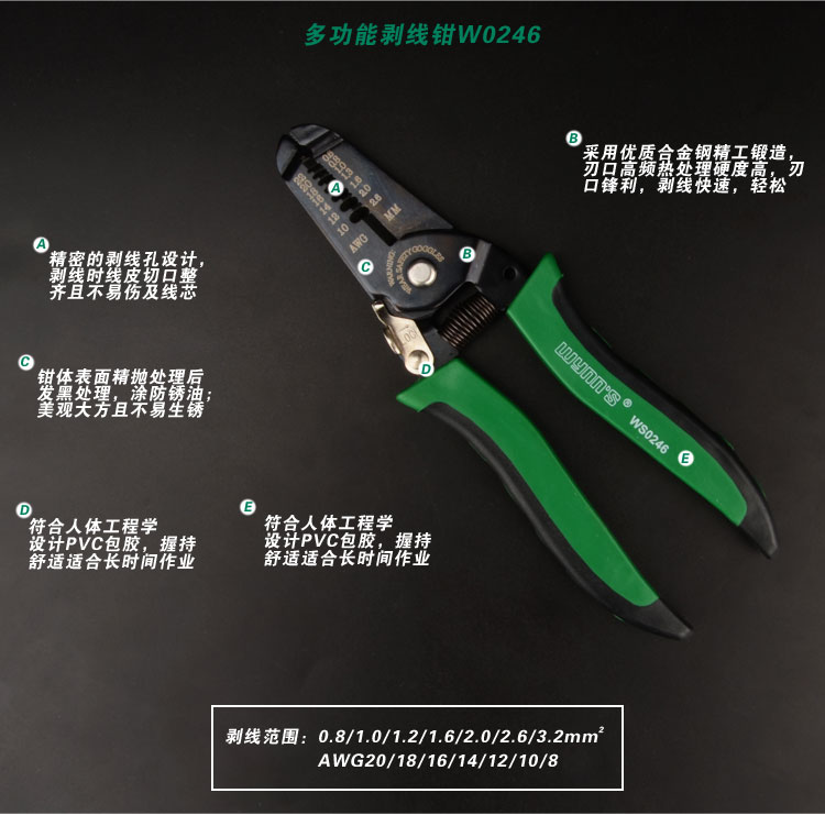정품 파워 라이온 다기능 와이어 스트리핑 플라이어 케이블 스트리핑 플라이어 다목적 와이어 스트리핑 플라이어 W0246