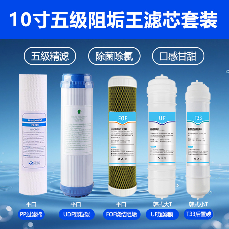 • 10인치 3+2 5단 필터 스케일 방지 킹 세트 블루 라벨(대량) PP+UDF+소결 FOF+대형 TUF+소형 T33
