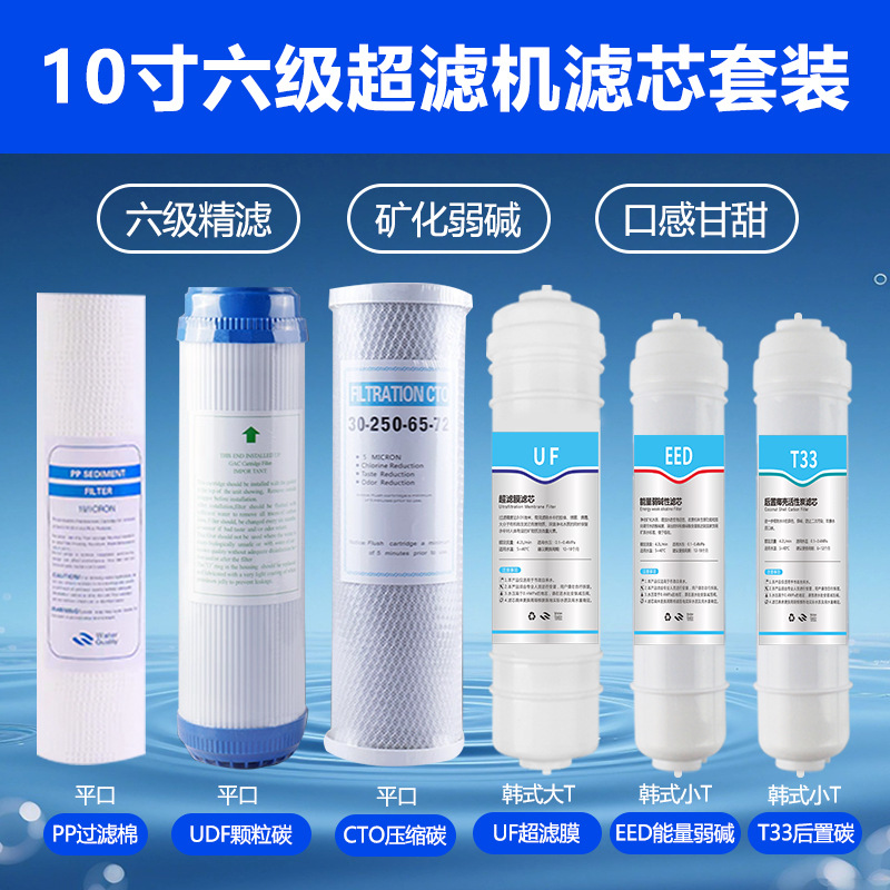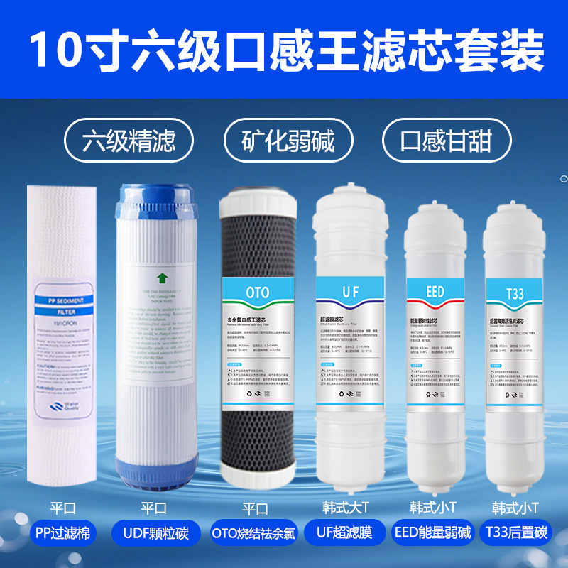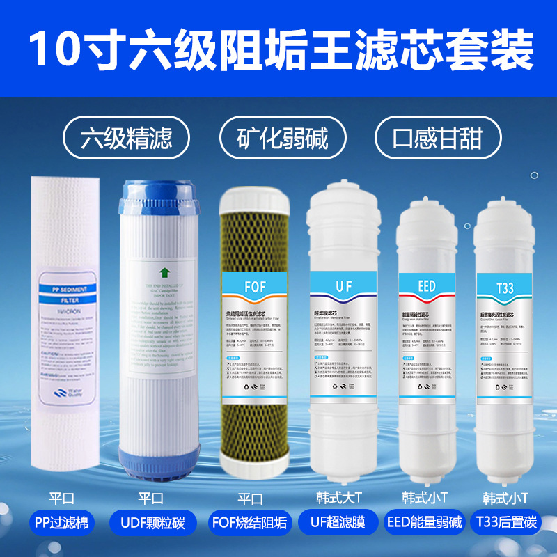 • 10인치 3+3 6단계 필터 요소 세트 블루 라벨(대량) PP+UDF+CTO+대형 TUF+소형 TEED+소형 T33