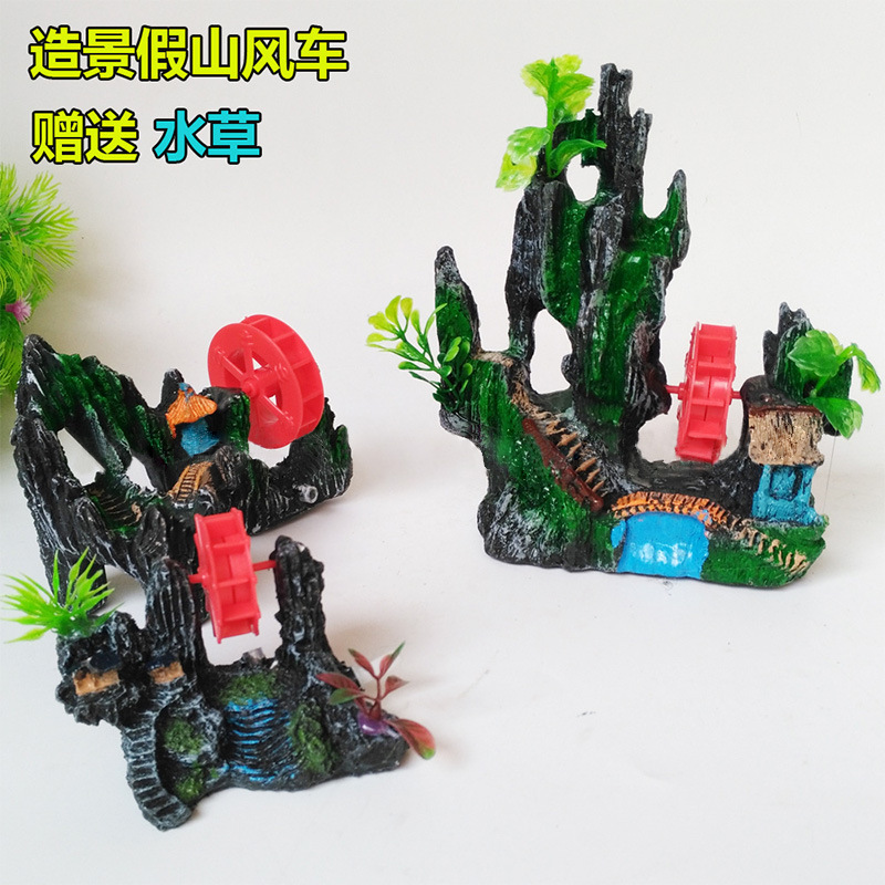 수족관 조경 어항 장식 시뮬레이션 수지 Rockery 돌 풍차 공기 펌프 회전식 rockery 물레방아스토어 가기