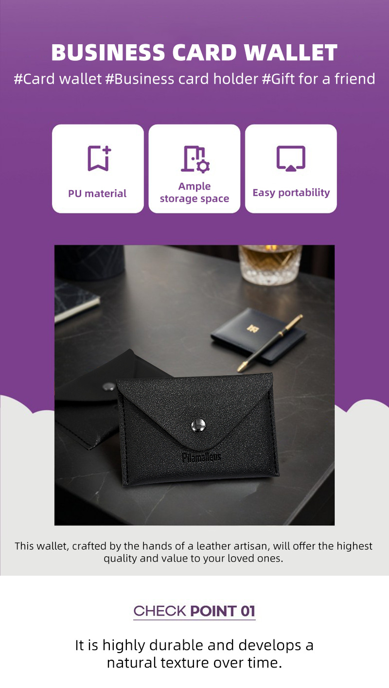 한국어 버전의 새로운 PU 픽업 가방, 간단한 동전 지갑, 초경량 및 휴대용 맞춤형 명함 가방, 창의적인 검정색 명함 가방