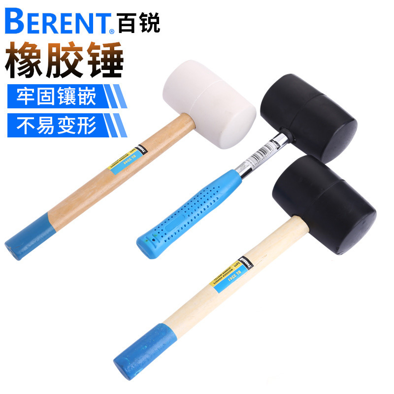 공장 납품 Bairui 고무 망치 나무 손잡이 흰색 검정 비 탄성 고무 망치 강관 손잡이 해머 타악기 바닥스토어 가기