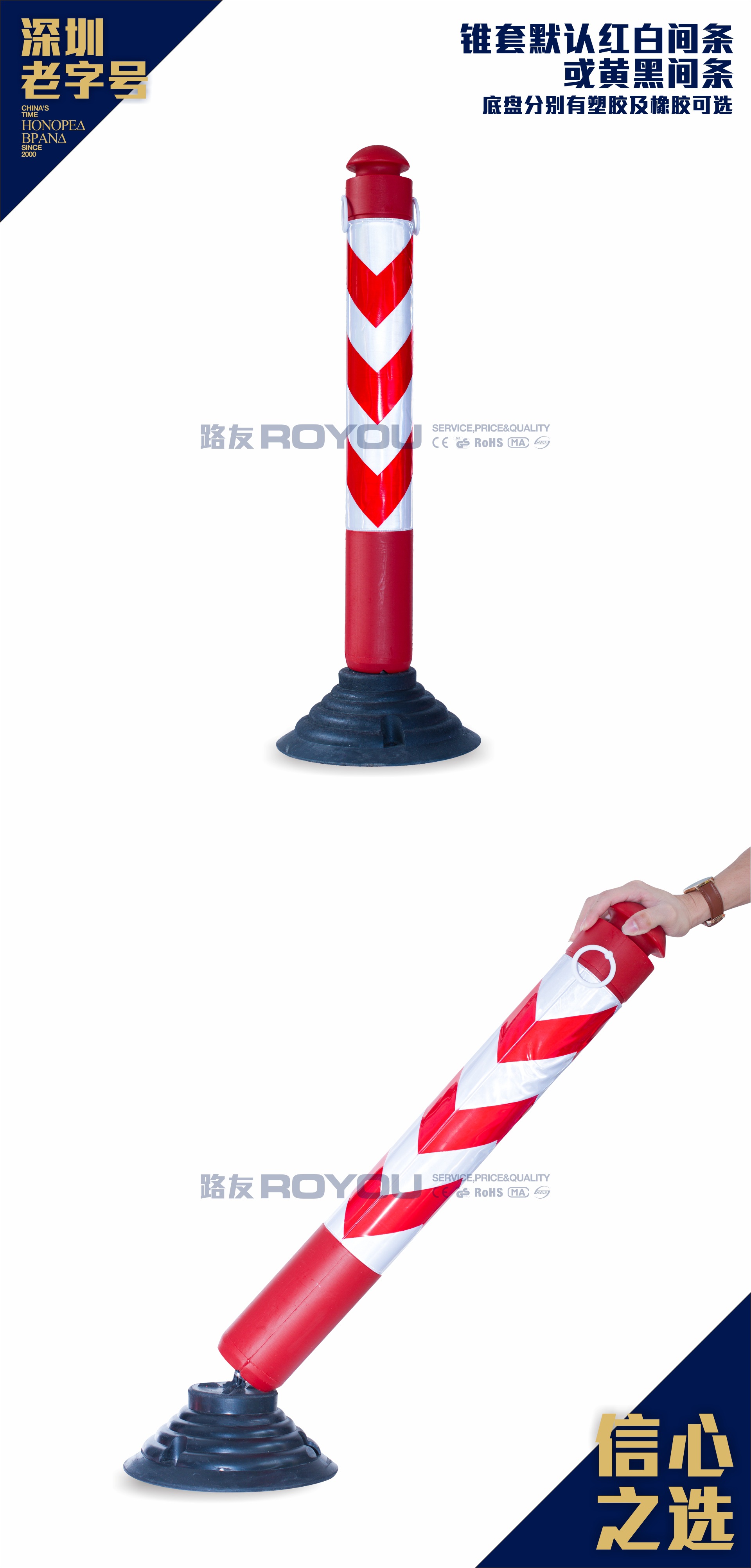 白天红白、红黄颜色醒目明显,晚上的晶格套能反射出耀眼的光芒,提醒驾驶员注意。