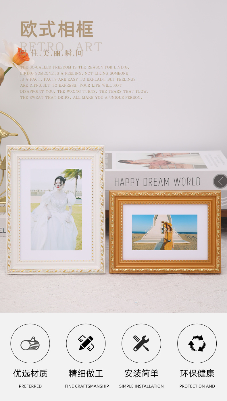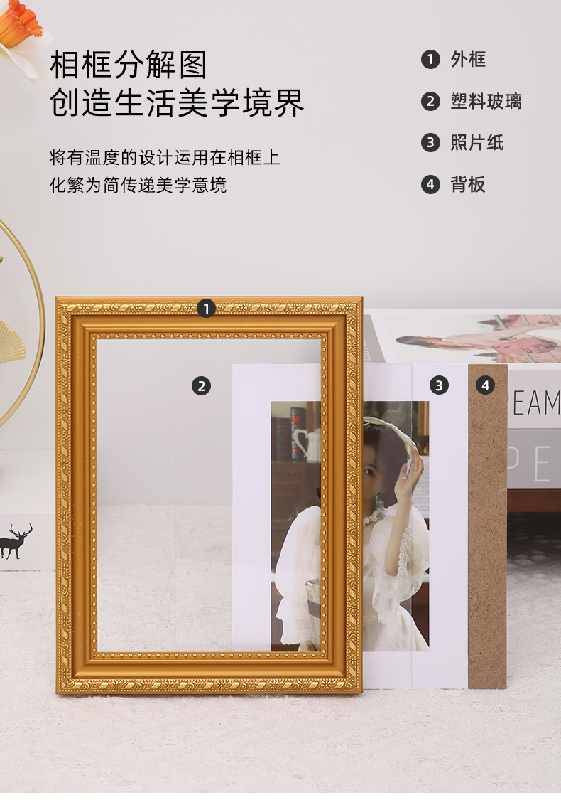 유럽식 사진 프레임 도매 A4 황금 웨딩 사진 스튜디오 장식 사진 프레임 6 인치 7 인치 8 인치 10 인치 사진 벽 프레임스토어 가기