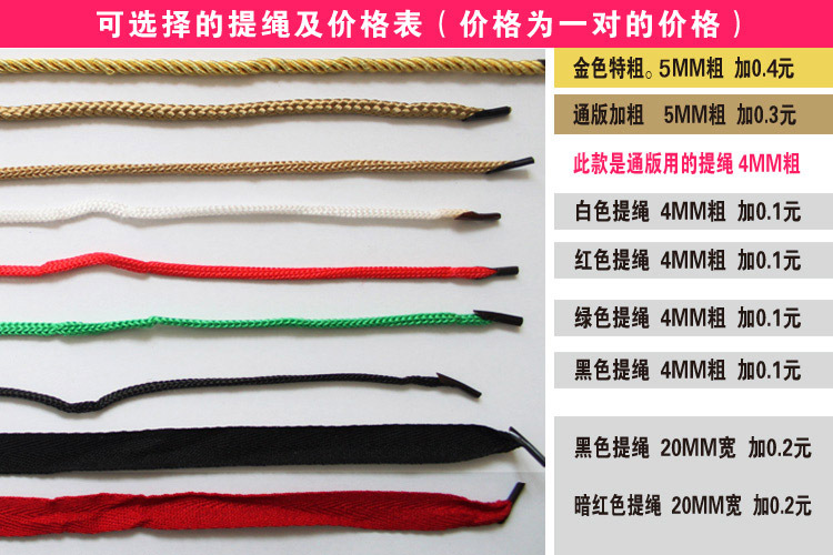 温馨提醒:无论定制或者现货都是自带绳子的,以上是客户定制绳子提供参考价格。