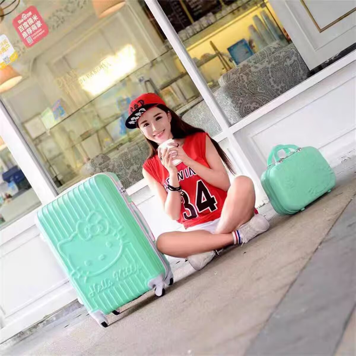 2016新款爱心凯蒂猫子母拉杆箱行李箱万向轮密码旅行箱20寸登机箱