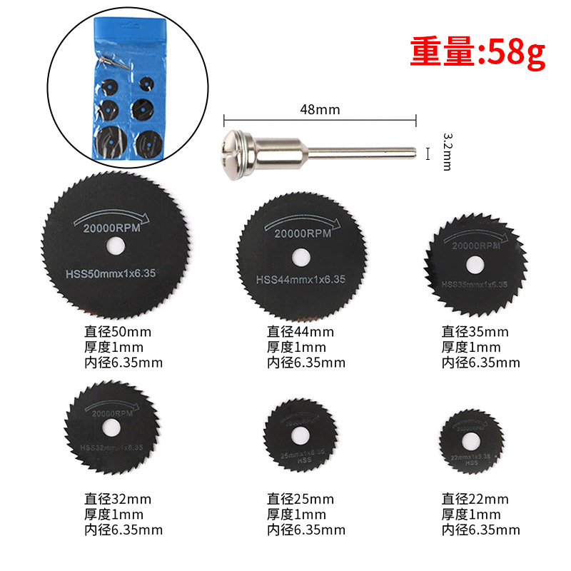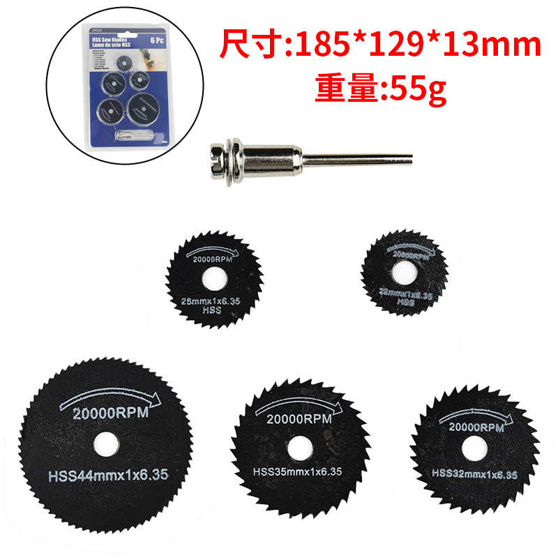 6片高速钢黑色切割片+接杆一支(接杆直径3.17mm)