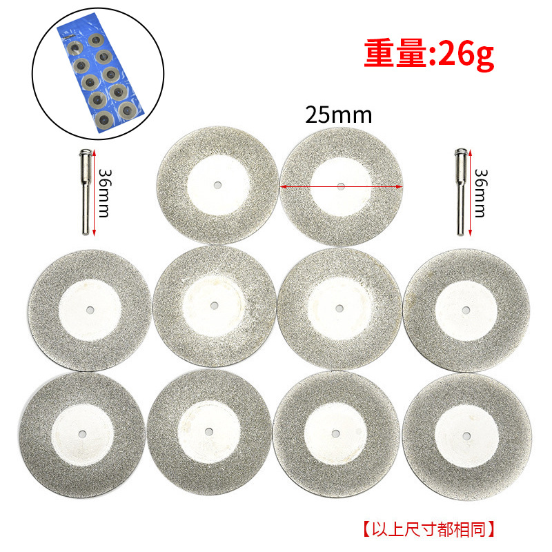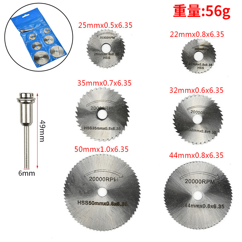 6片高速钢白色切割片+接杆一支(接杆直径6mm)