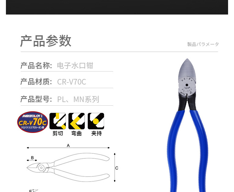 원래 정품 일본 KEIBA 브랜드 PL716/724/725/726 물 입 펜치 크롬 바나듐 합금 강철 입 펜치