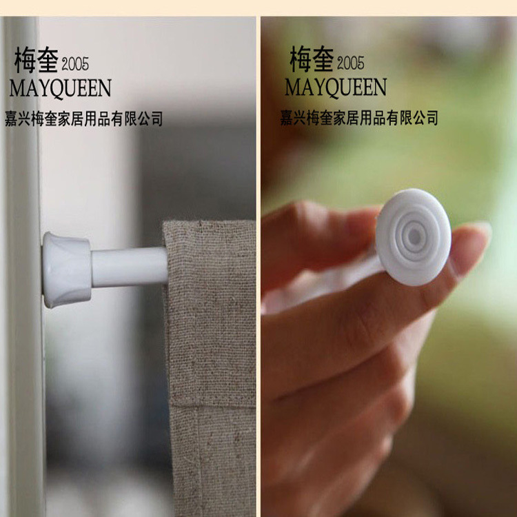 用于窗框、门框、浴室或柜子,安装无需工具和打眼。根据墙距不同,调好杆的长度,两头顶紧,就可固定在两墙之间(杆内有弹簧,靠弹簧撑紧)。