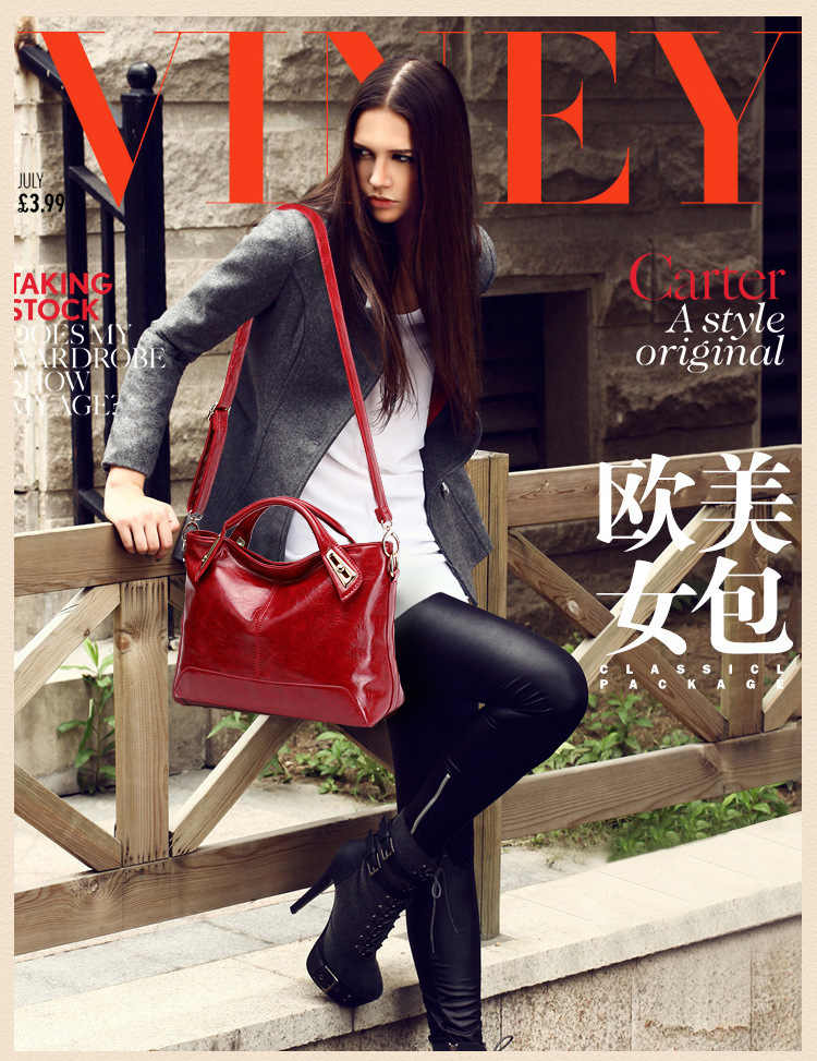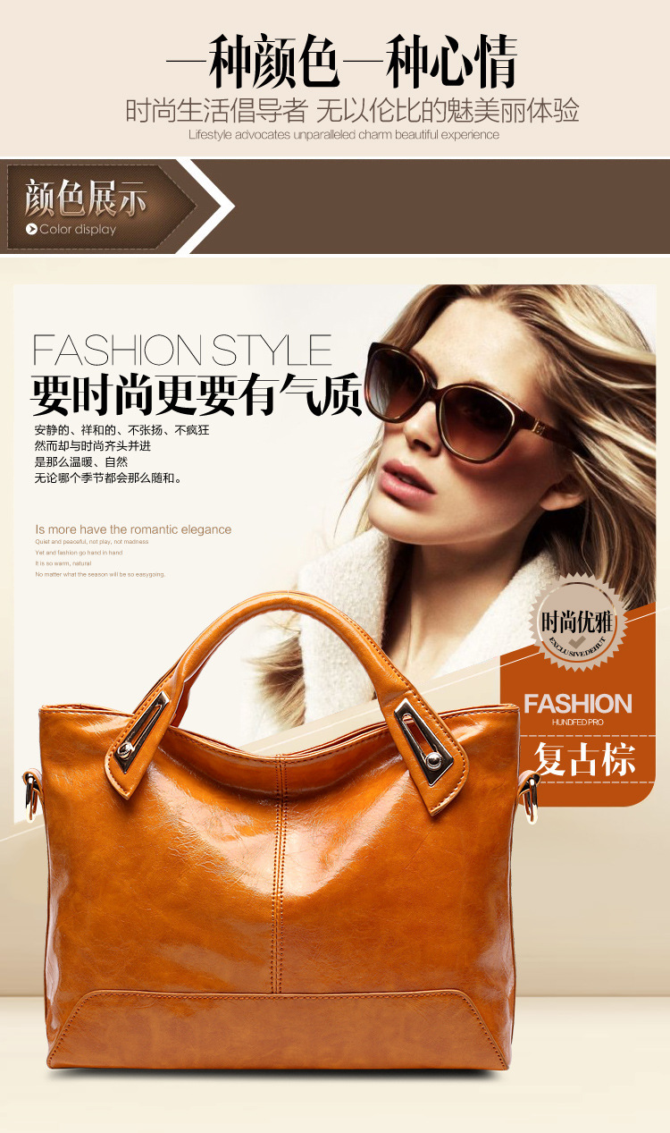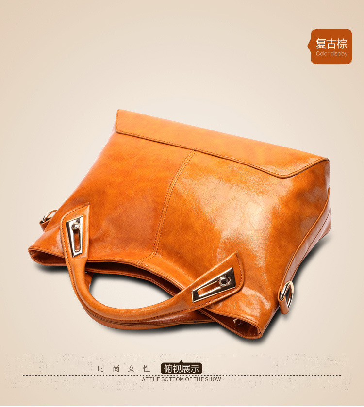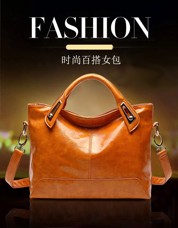 레트로 패션 여성 가방 오일 가죽 밝은 얼굴 대용량 핸드백 모든 매치 심플 숄더 크로스 바디 백 도매스토어 가기