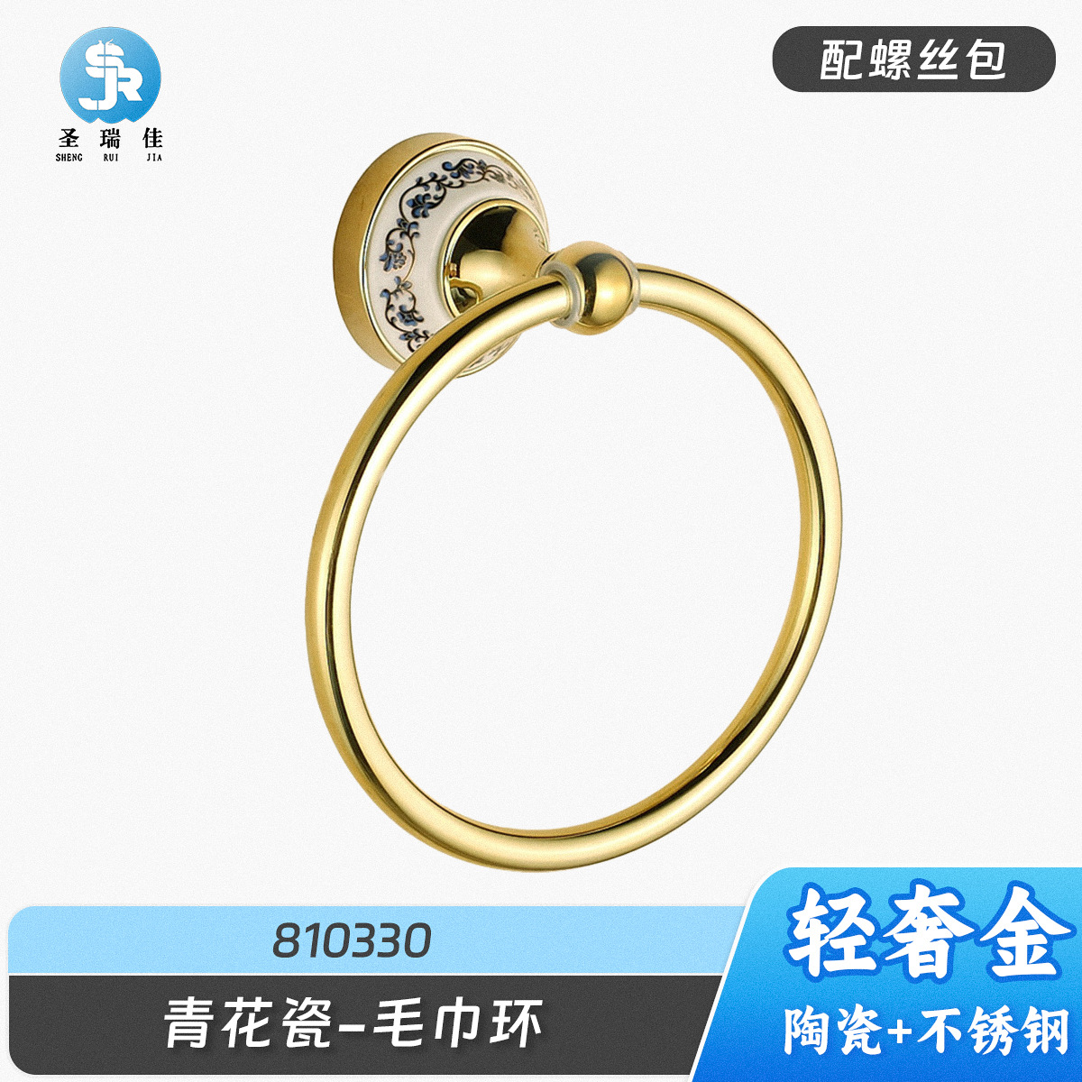 세라믹 수건걸이, 욕실용품, 금도금 청화도자기 수건걸이, 스테인리스 원형 링, 해외 공급원산지스토어 가기