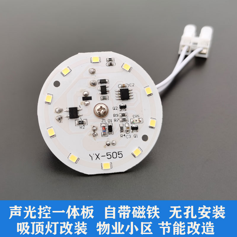 翼芯智能自主研发生产,吸顶灯声光控一体改造板,自带磁铁柱,方便安装。只需要两秒安装即可完成,适合家用楼道吸顶灯改造,物业小区,旧小区改造,停车场等……